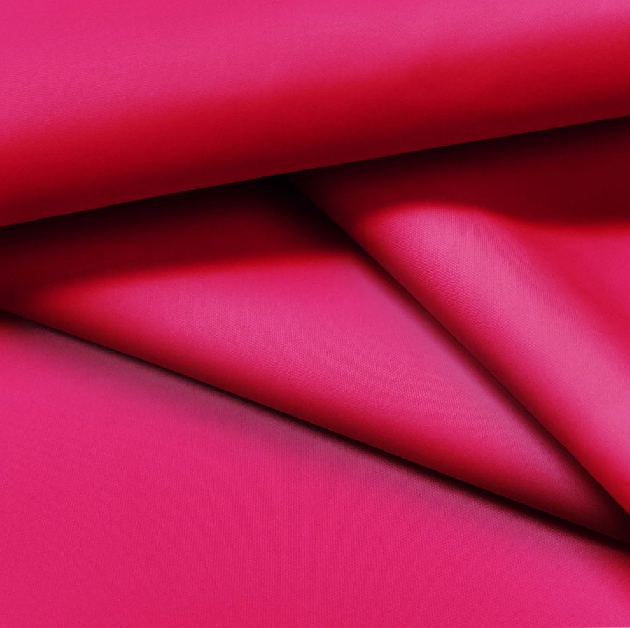 La tela base, Tela fina repelente al Agua - Storm de 100% POLIÉSTER, presenta un color liso impreso en rojo purpúreo con un CMYK de 1 100 57 0. Este color secundario evoca una sensación de energía, pasión y sofisticación, y combina especialmente bien con tonos grisáceos, verdes azulados y amarillos. La tela está impresa con el color liso a una sola cara por impresión digital textil.