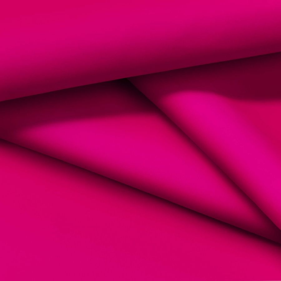 La tela base es la Tela Fina Repelente al Agua - Storm, compuesta por 100% poliéster, con un gramaje de 70 gr/m2, un ancho de 145 cm y acabado hidrofugo. El color liso impreso es Rojo Rubine, representado por la tinta CMYK de 11 100 42 3. Este color secundario tiene una mezcla intensa de magenta y amarillo, lo que lo hace un tono vibrante y llamativo. Complementa bien con tonos neutros como blanco y gris, pero también funciona bien con otros tonos intensos como azul oscuro y verde oscuro. Es importante destacar que la tela está impresa con el color liso a una sola cara por impresión digital textil.