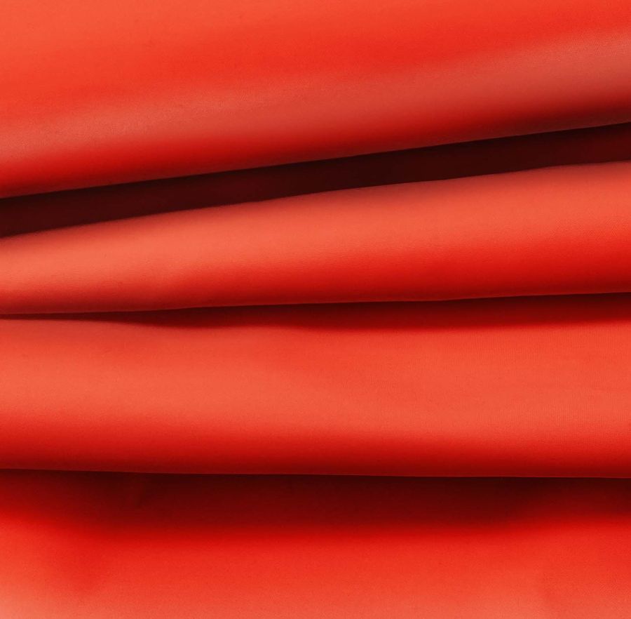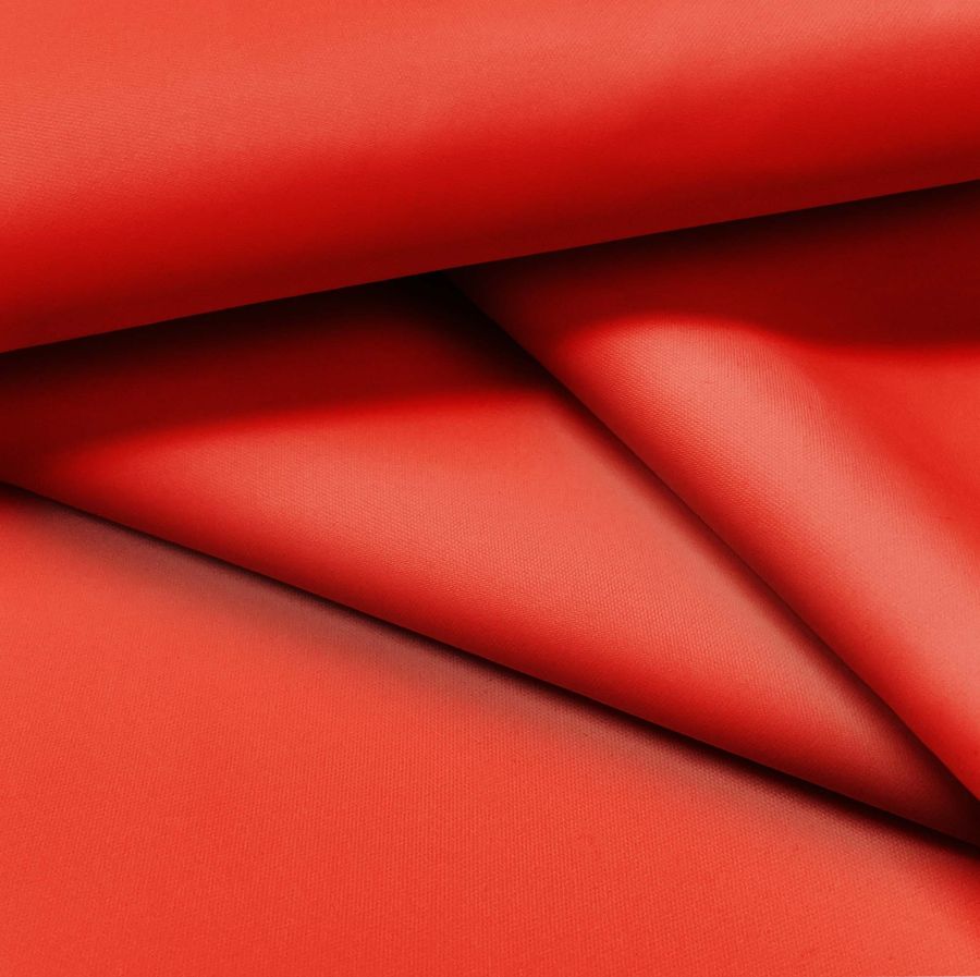 La tela base es Tela Fina Repelente al Agua - Storm, un tejido técnico compuesto por 100% poliéster con un gramaje de 70 gr/m2 y un ancho de 145 cm. Su color liso impreso es rojo ryb con un CMYK de 0 89 89 0. Este color secundario es rico en tonalidades rojas y tirando a magenta debido a su alta intensidad en la tinta magenta y yellow. Además, combina perfectamente con tonos neutros como el blanco y el negro, pero también con tonos complementarios como el verde o el azul. Es importante mencionar que el tejido está impreso con el color liso a una sola cara por impresión digital textil.