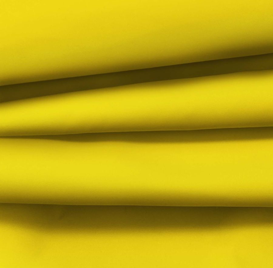 La tela base es la Tela fina repelente al Agua - Storm, una tela técnica de poliéster con un gramaje de 70 gr/m2 y un ancho de 145 cm. Con respecto al color, se trata de un amarillo huevo con un CMYK de 0 16 91 0, lo que indica que predomina el amarillo con un aporte moderado de magenta y un elevado aporte de amarillo, sin presencia de tinta negra. Este color se caracteriza por su luminosidad y alegría, y combina bien con tonos análogos como el naranja o el verde, así como con complementarios como el morado o el azul.