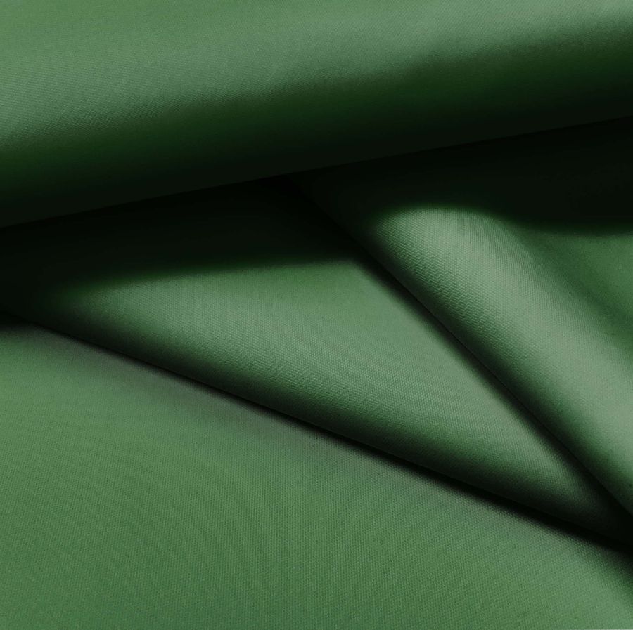 La tela base es la Tela Fina Repelente al Agua - Storm, compuesta por 100% poliéster y con un gramaje de 70 gr/m2. Su ancho es de 145 cm y su color liso impreso es un verde albahaca con una composición de tinta Cyan: 82, Magenta: 40, Yellow: 94 y Black: 39, representado por el código CMYK de 82 40 94 39. Este color es simbólico de la frescura de la primavera y se combina especialmente bien con tonos de blanco, beige y gris para crear un contraste suave.