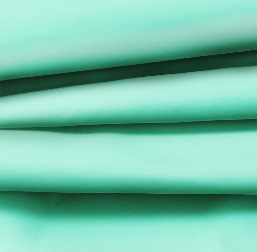 La Tela fina repelente al Agua - Storm, de composición 100% POLIÉSTER y con un gramaje de 70 gr/m2, presenta un color liso impreso de tonalidades verdes y verdes aguamarina, con una composición de tinta Cyan: 46, tinta Magenta: 0, tinta Yellow: 32 y tinta Black: 0, lo que da como resultado un CMYK de 46 0 32 0. Este color secundario tiene una connotación refrescante, calmante y equilibrante, evocando la naturaleza y la frescura del agua. Combina perfectamente con otros tonos de verde, azul claro, blanco y gris, creando un ambiente relajante y armonioso. Además, este tejido está impreso a una sola cara por impresión digital textil, con un acabado de alta resolución y durabilidad.