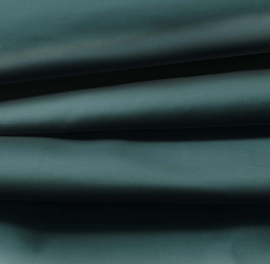 La tela base es la Tela fina repelente al Agua - Storm, un tejido técnico de 100% poliéster con un gramaje de 70 gr/m2 y ancho de 145 cm. El color liso impreso es un verde-azul verdoso con un CMYK de 84 54 55 59. Este color se caracteriza por su frescura y naturalidad, evocando la naturaleza y la tranquilidad. Combina perfectamente con tonos neutros como el blanco y el gris, pero también puede contrastar con tonos más oscuros como el marrón o el negro.