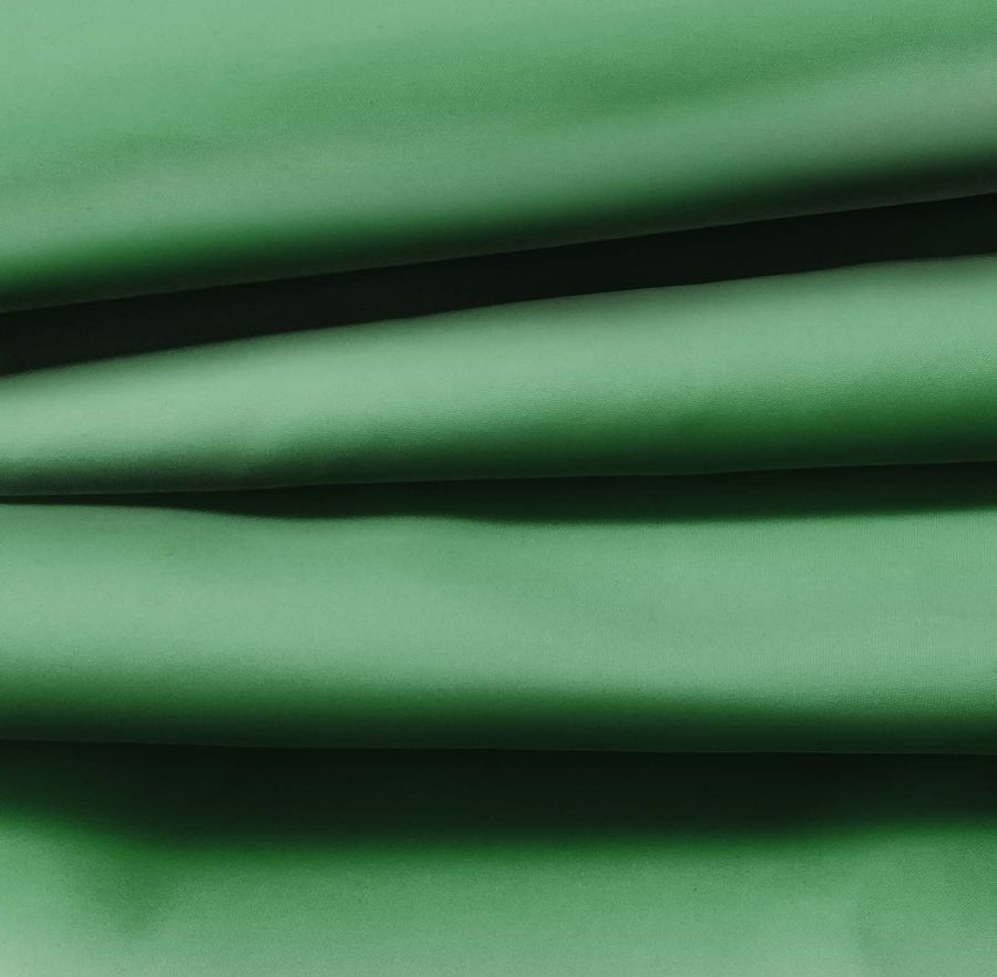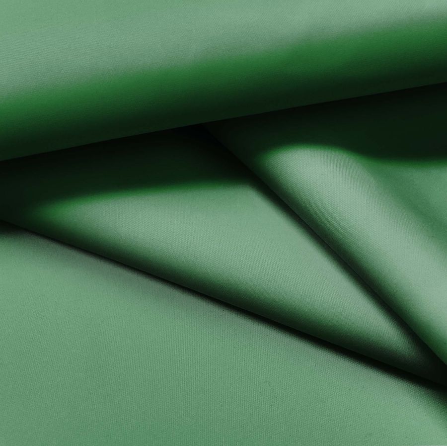 La tela base, Tela fina repelente al Agua - Storm, es un tejido técnico de 100% poliéster con un peso de 70 gramos por metro cuadrado y un ancho de 145 centímetros. De color liso, su tonalidad se compone de un verde grisáceo con una tinta Cyan del 75%, una tinta Magenta del 29%, una tinta Yellow del 76% y una tinta Black del 13%, lo que aporta una tonalidad suave y elegante. La combinación del verde y el gris representa la naturaleza, la frescura y la calma, lo que lo convierte en un color ideal para prendas y objetos de decoración en interiores.