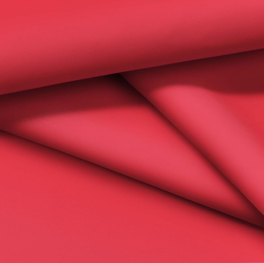 La tela base es la Tela fina repelente al Agua - Storm, compuesta por 100% de poliéster y un gramaje de 70 gr/m2, con un ancho de 145 cm. El color liso impreso es un Rojo Pantone con CMYK de 0 89 68 0. El color secundario es un rojo intenso y vibrante que combina muy bien con tonos naranjas y amarillos.