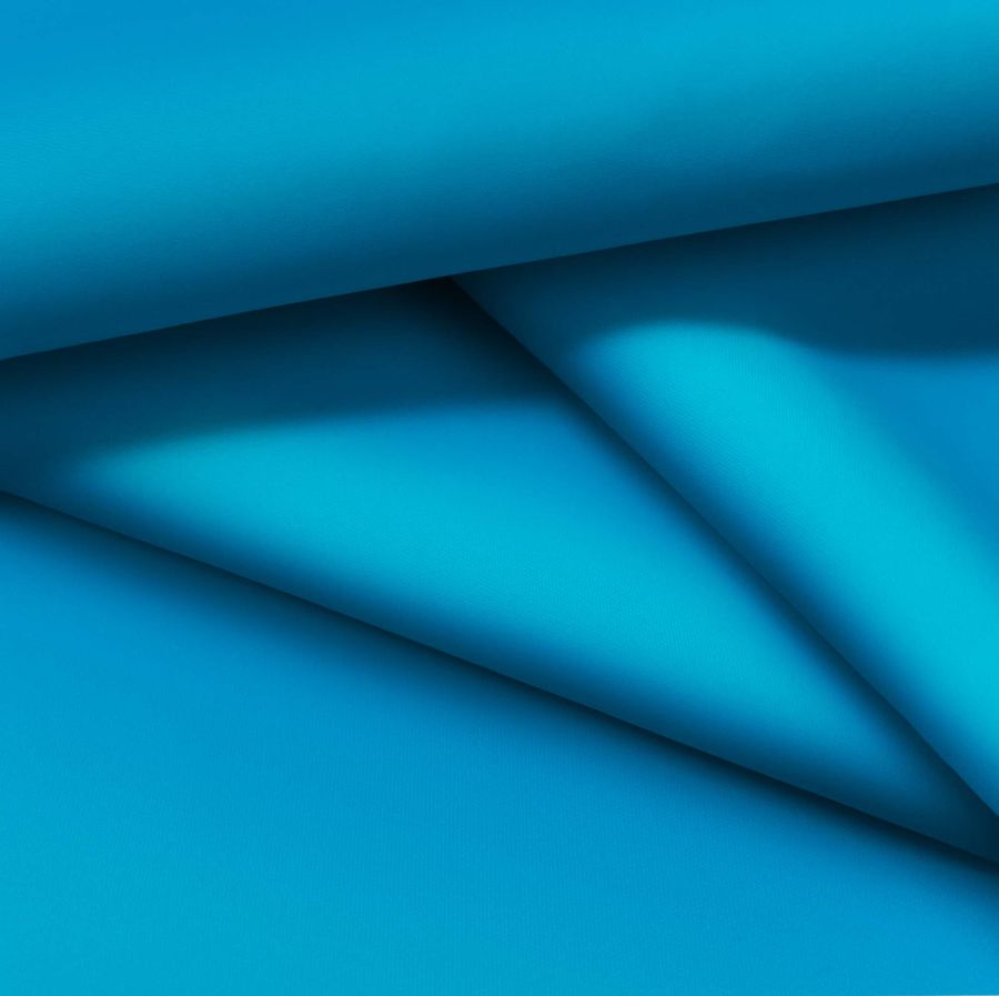 La tela base es la Tela Fina Repelente al Agua - Storm, con un gramaje de 70 gr/m2, 100% poliéster y un ancho de 145 cm. El color liso impreso en esta tela es el Azul Caribe, con una combinación de tintas CMYK de 83 38 3 0. Este color simboliza la tranquilidad de las aguas caribeñas, con un tono vibrante y alegre. Combina perfectamente con otros colores frescos como el blanco, verde lima y amarillo.