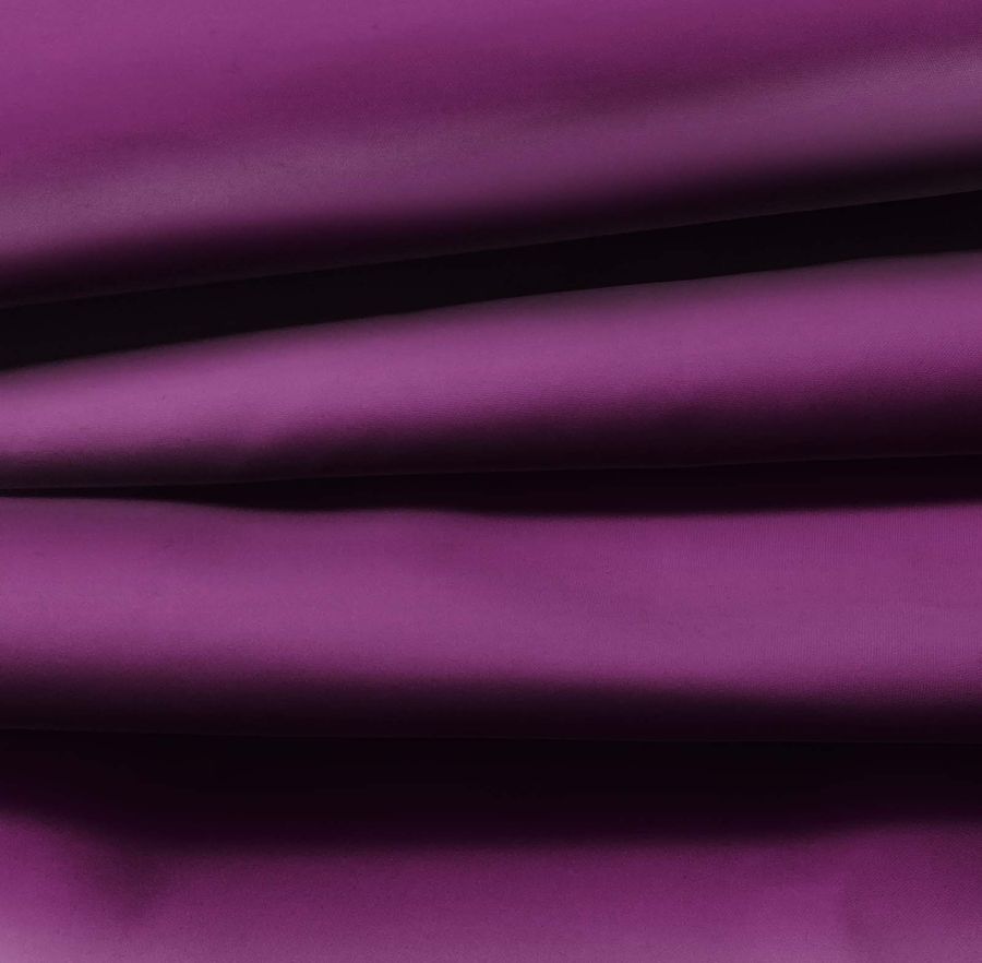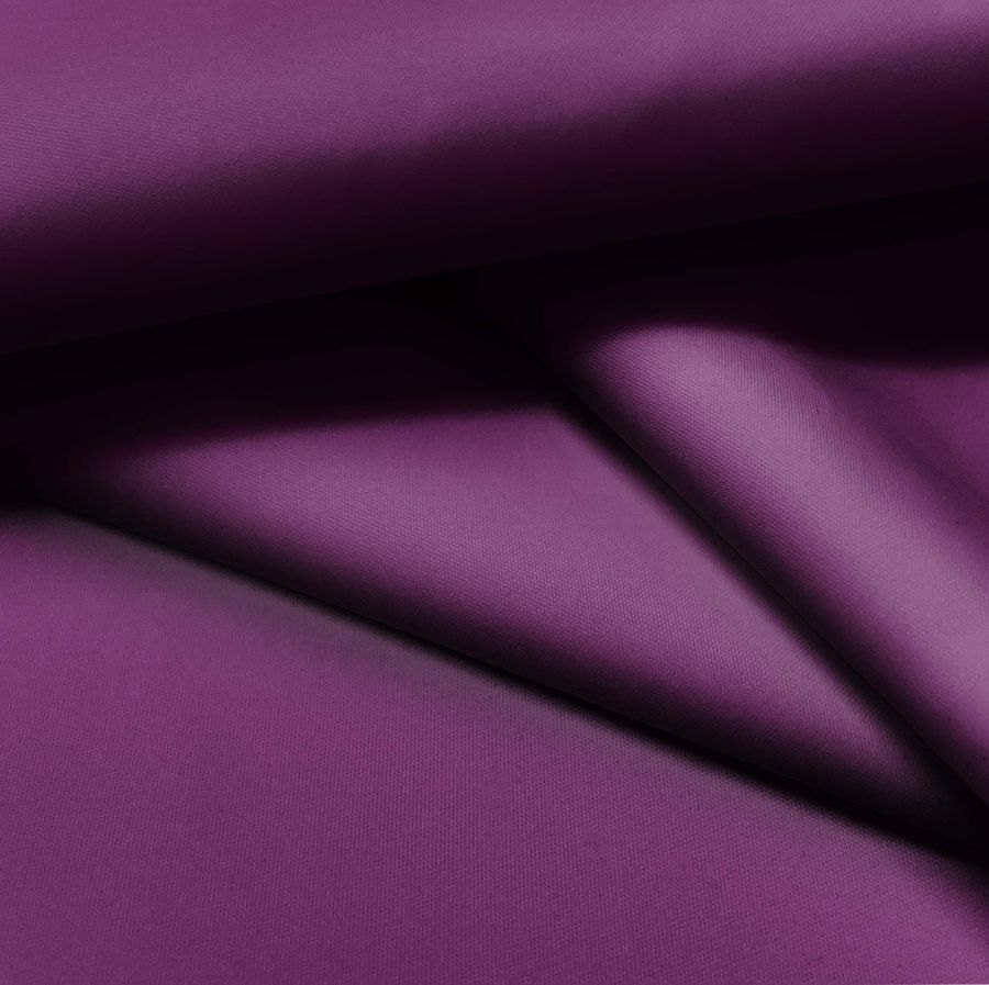 La tela base es la "Tela fina repelente al Agua - Storm", una tela técnica de 100% poliéster con un gramaje de 70 gr/m2 y un ancho de 145 cm. Está diseñada para ser resistente al agua y a su vez, ligera y delgada. El color liso impreso es un tono de morado cercano a una ciruela morada, con un contenido de CMYK en 70 100 33 40. Este color es intenso, elegante y combina muy bien con tonos neutros como el gris, el negro y el blanco.