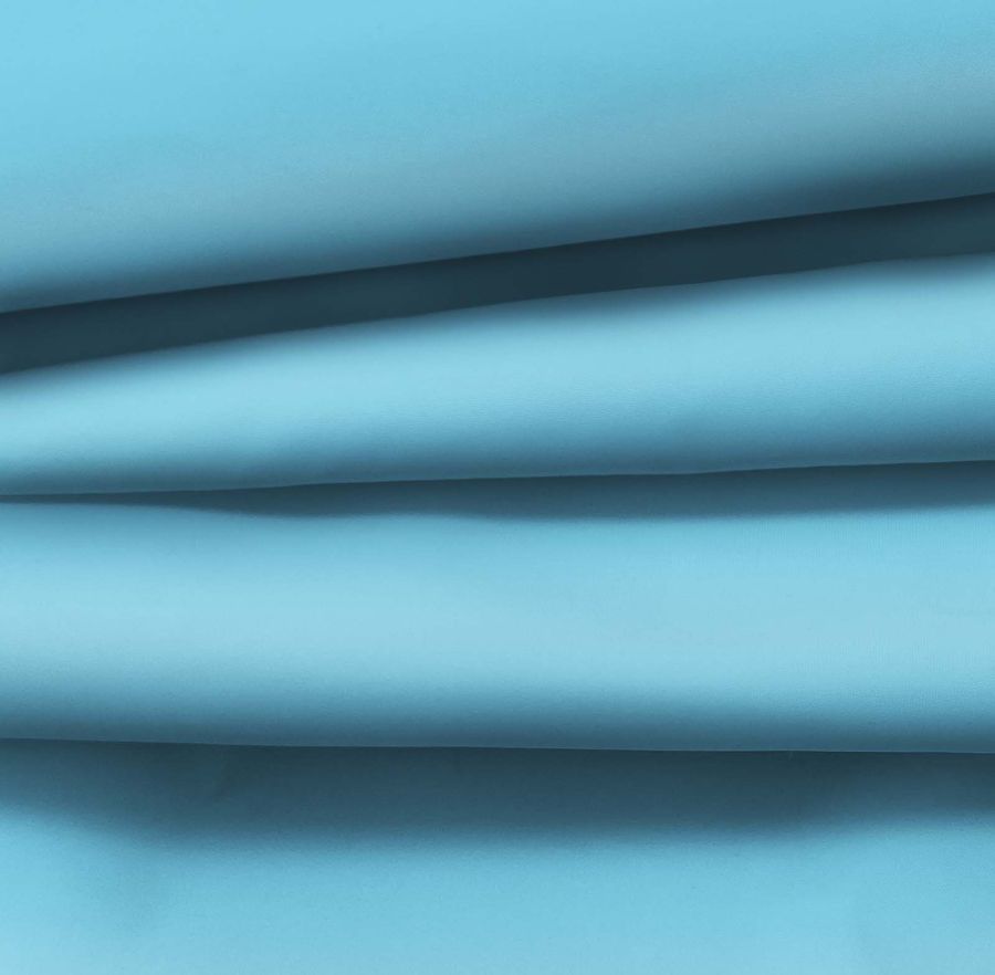 La tela base de este tejido es la Tela Fina Repelente al Agua - Storm, un tejido técnico compuesto por 100% poliéster con 70 gr/m2 de gramaje y un ancho de 145 cm. Su color liso impreso es de tonalidad azul claro, con un CMYK de 55 3 0 0, lo que indica una base de cian fuerte y una mínima cantidad de magenta. El resultado es un color luminoso y fresco, ideal para su aplicación en ropa de invierno y prendas deportivas.