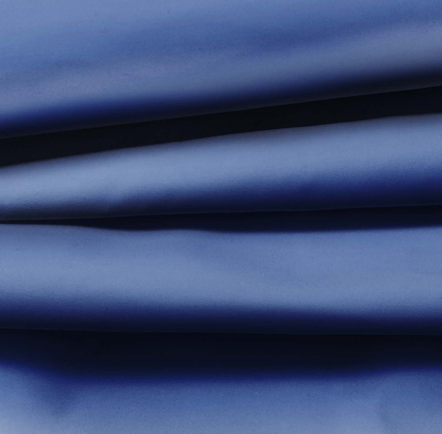 La tela base es un tejido técnico de poliéster 100%, de color liso impreso en tonalidad Azul Oriente, que se obtiene mediante una combinación de tintas CYMK en las siguientes proporciones: Cyan 89, Magenta 73, Yellow 21 y Black 6. El resultado es un color vibrante y alegre que transmite una sensación de energía y vitalidad en cualquier prenda o decoración en la que se aplique.