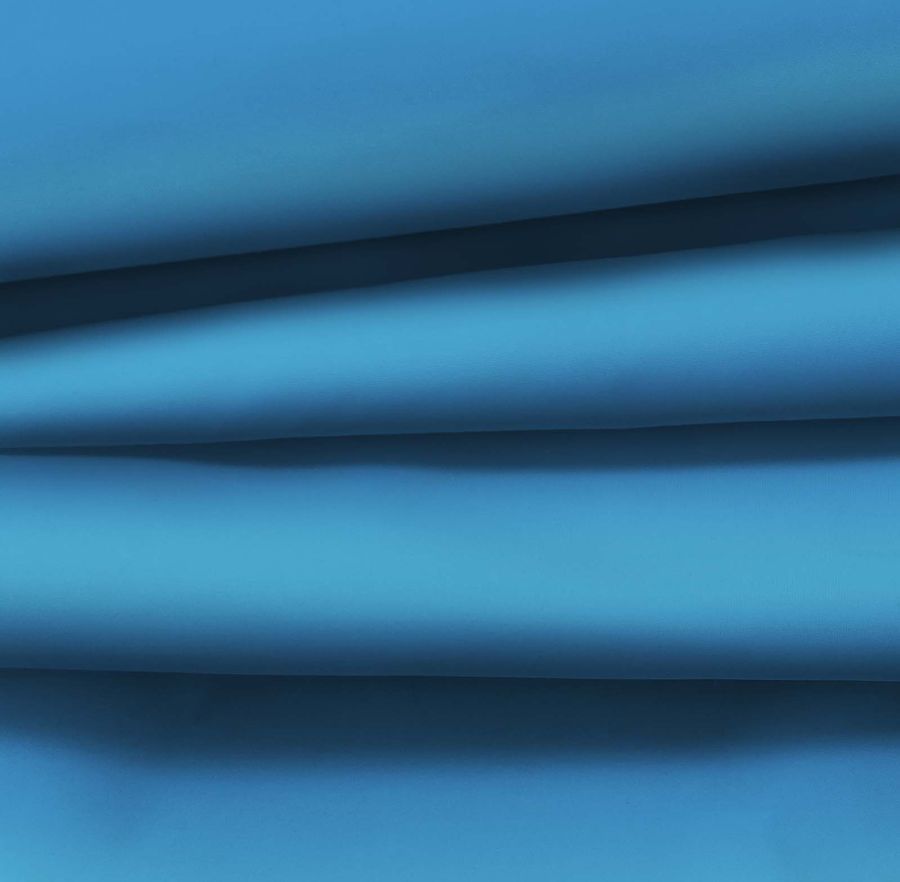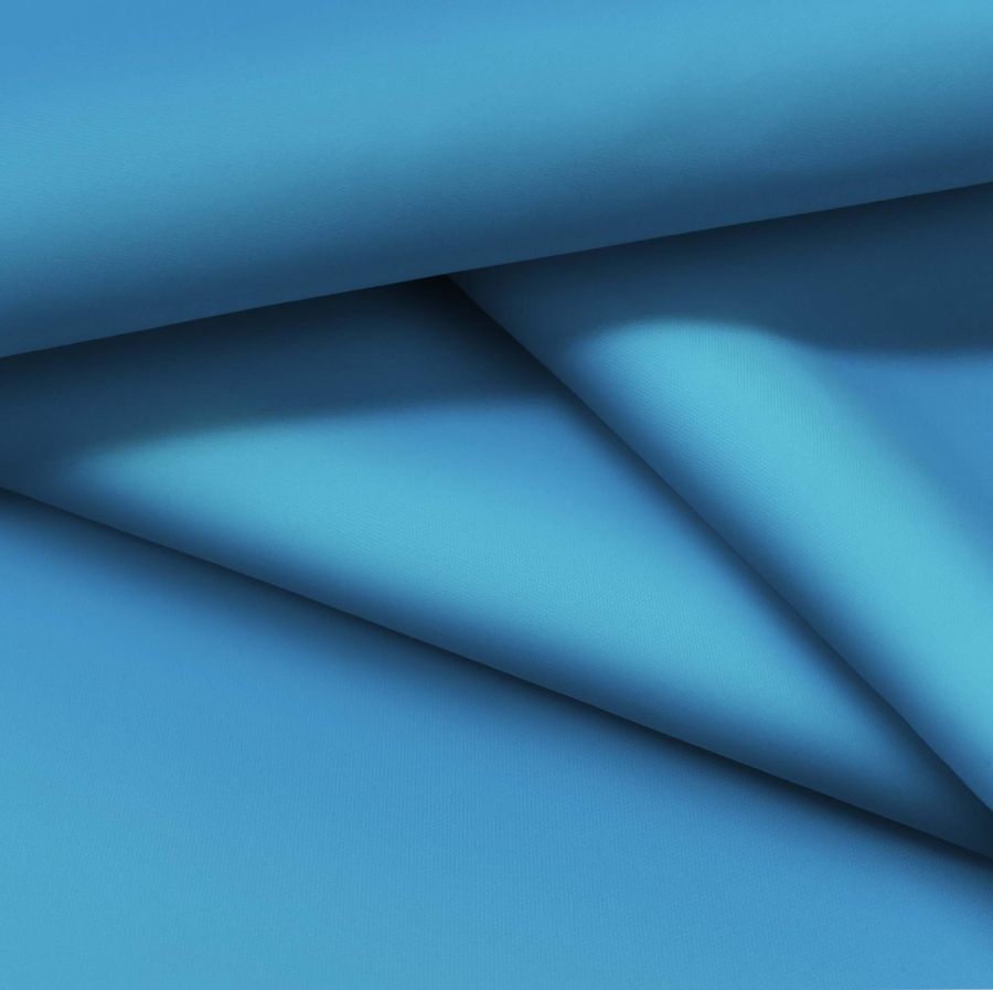 La tela base es la Tela fina repelente al Agua - Storm, un tejido técnico compuesto en un 100% de POLIÉSTER con un gramaje de 70 gr/m2 y un ancho de 145 cm. El color liso impreso es un Azul Virgen, con un CMYK de 77 40 6 0. Este color secundario se describe como un tono azul eléctrico, vibrante y lleno de energía. Combina a la perfección con colores como amarillo, verde lima o naranja.