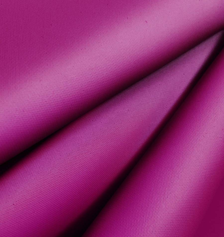 La Tela Impermeable - Outdoor es un tejido técnico compuesto al 100% de poliéster, con un gramaje de 200 gr/m2 y un ancho de 150 cm. Este tejido es impermeable y tiene una textura rugosa y granulada que le confiere un tacto único. El color liso impreso es una mezcla de rojo y púrpura, con los siguientes atributos: tinta cian al 50%, tinta magenta al 100%, tinta amarilla al 18% y tinta negra al 9%. Este color resulta en un tono vivo y vibrante que combina especialmente bien con tonos oscuros como el negro y el azul marino.