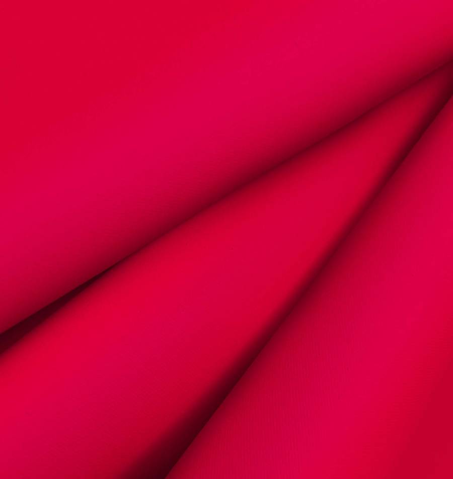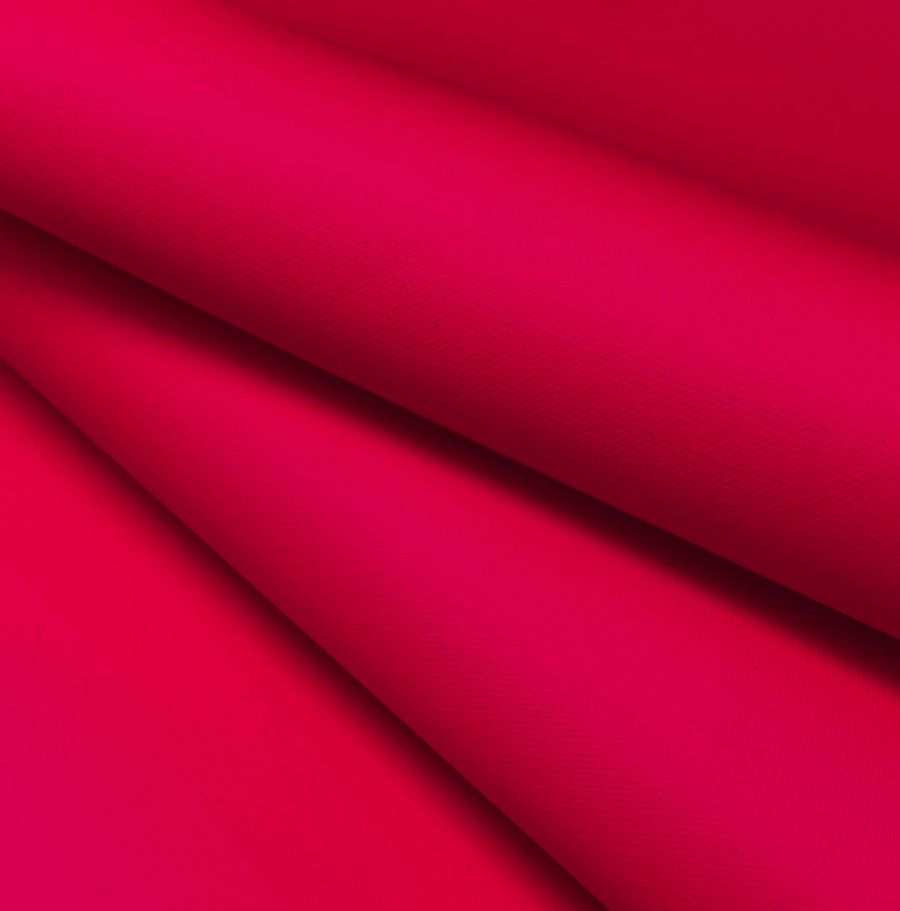La tela base es la Tela Impermeable - Outdoor, un tejido técnico compuesto al 100% de poliéster con un gramaje de 200 gr/m2 y una anchura de 150 cm. El color liso impreso es un rojo carmín, con una proporción de 0% de tinta Cyan, 95% de tinta Magenta, 67% de tinta Yellow y 0% de tinta Black, reflejado en el CMYK 0 95 67 0. Esta combinación de tintas resulta en un color intenso y vibrante, que se combina de manera ideal con colores neutros como el negro y el blanco, así como con tonos más sutiles como el gris o el beige.