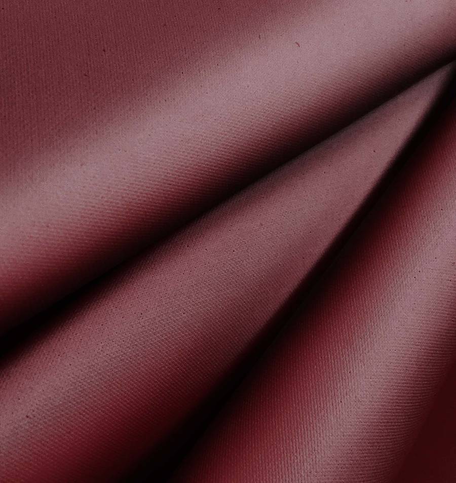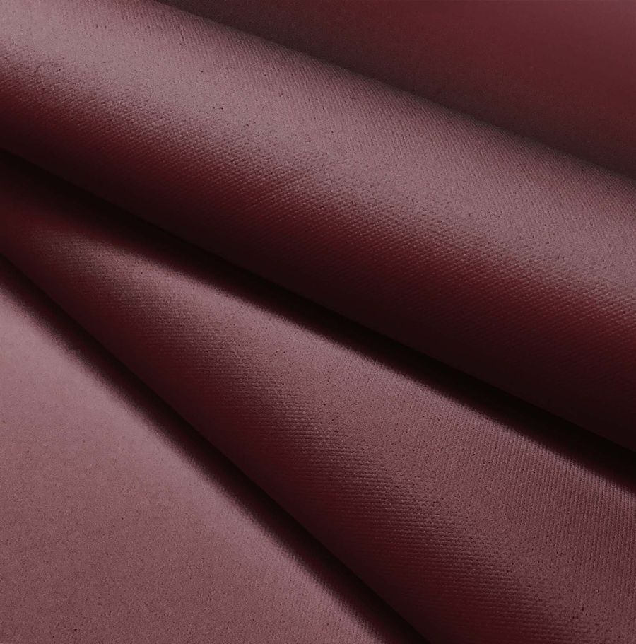 La tela base es la Tela Impermeable - Outdoor, un tejido técnico con una composición de 100% poliéster, un gramaje de 200 gr/m2 y un ancho de 150 cm. El color liso impreso en esta tela es un rojo escarlata oscuro, con una combinación de tintas Cyan: 38, Magenta: 82, Yellow: 57 y Black: 59, correspondiente al CMYK 38 82 57 59. Este color transmite una sensación de pasión y fuerza, evocando la vitalidad y el encanto del fuego. Combina bien con tonalidades azules, como turquesa y añil, e igualmente con colores verdes y amarillos suaves, para neutralizar su intensidad. El tejido está impreso con este color liso a una sola cara por impresión digital textil, utilizando una tecnología especial de sublimación de poliéster.