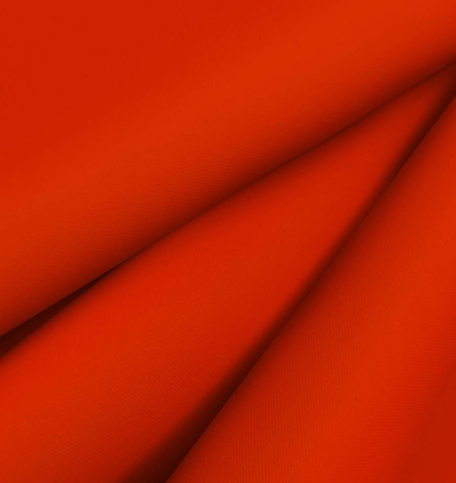 La tela base de este tejido es la Tela Impermeable - Outdoor, un tejido técnico compuesto por 100% poliéster y con un gramaje de 200 gr/m2. La tela presenta una textura granulada y rugosa que le confiere una apariencia opaca. Tiene un ancho de 150 cm y su color liso impreso es rojo con matices de annato oscuro. El color se obtiene mediante tecnología de sublimación, y su CMYK es 0 93 100 0.