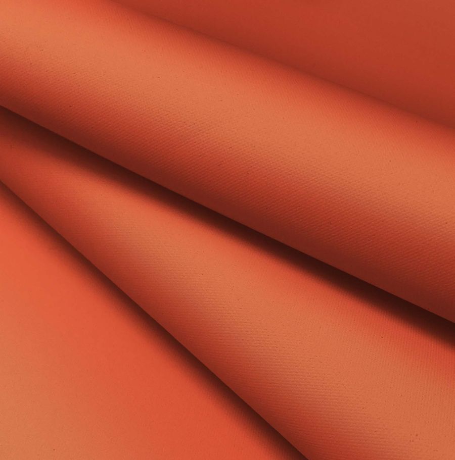 El color secundario que se ha incorporado en la tela es un tono anaranjado-naranja, que se combina con el rojo base aportando un contraste cálido y vibrante. Este color es especialmente adecuado para añadir detalles y acentos a los diferentes objetos o prendas realizados en esta tela. Por su composición, la tela base admite todo tipo de colores, pero este segundo color destacado permite una elección ideal para contrastar y crear diseños atractivos.