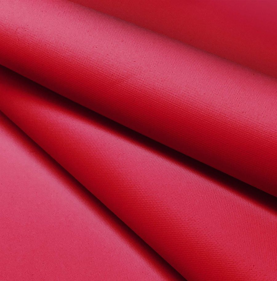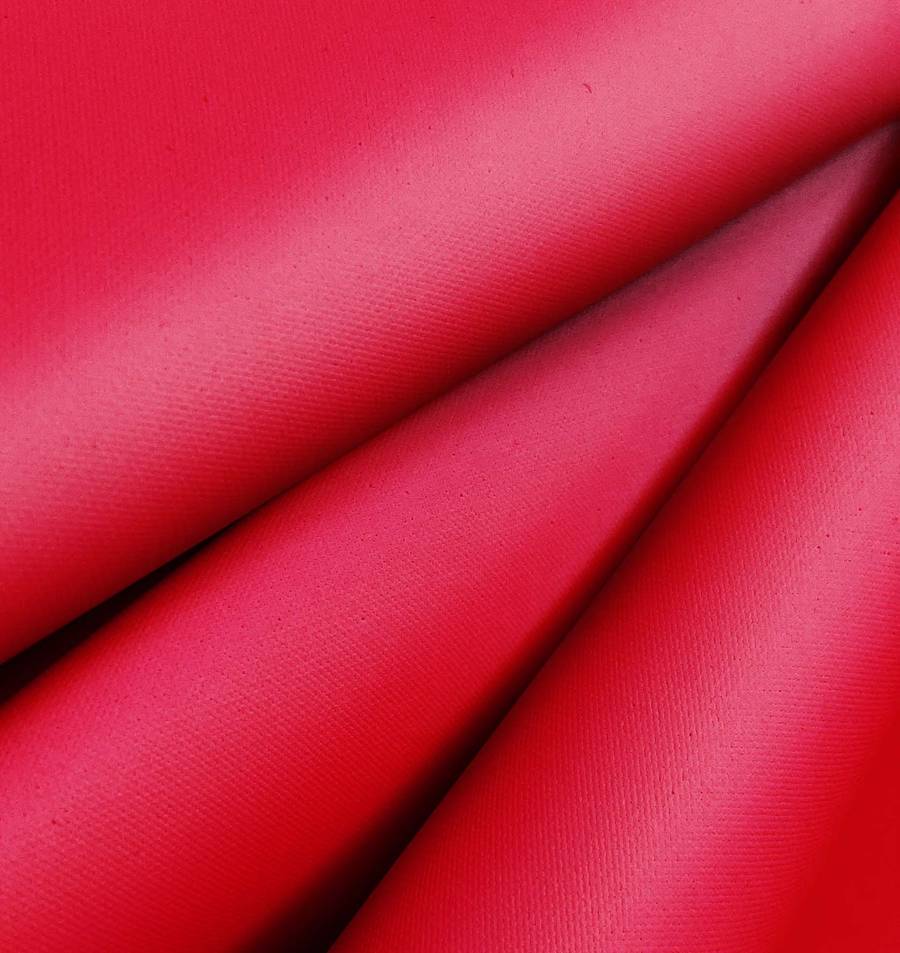 La tela base es la Tela Impermeable - Outdoor, un tejido técnico 100% poliéster con un gramaje de 200 gr/m2 y un ancho de 150 cm. La tela es impermeable y tiene una textura granulada y rugosa. El color liso impreso es Rojo Vino Tinto, con una tinta Cyan de 12, una tinta Magenta de 100, una tinta Yellow de 73 y una tinta Black de 3.
