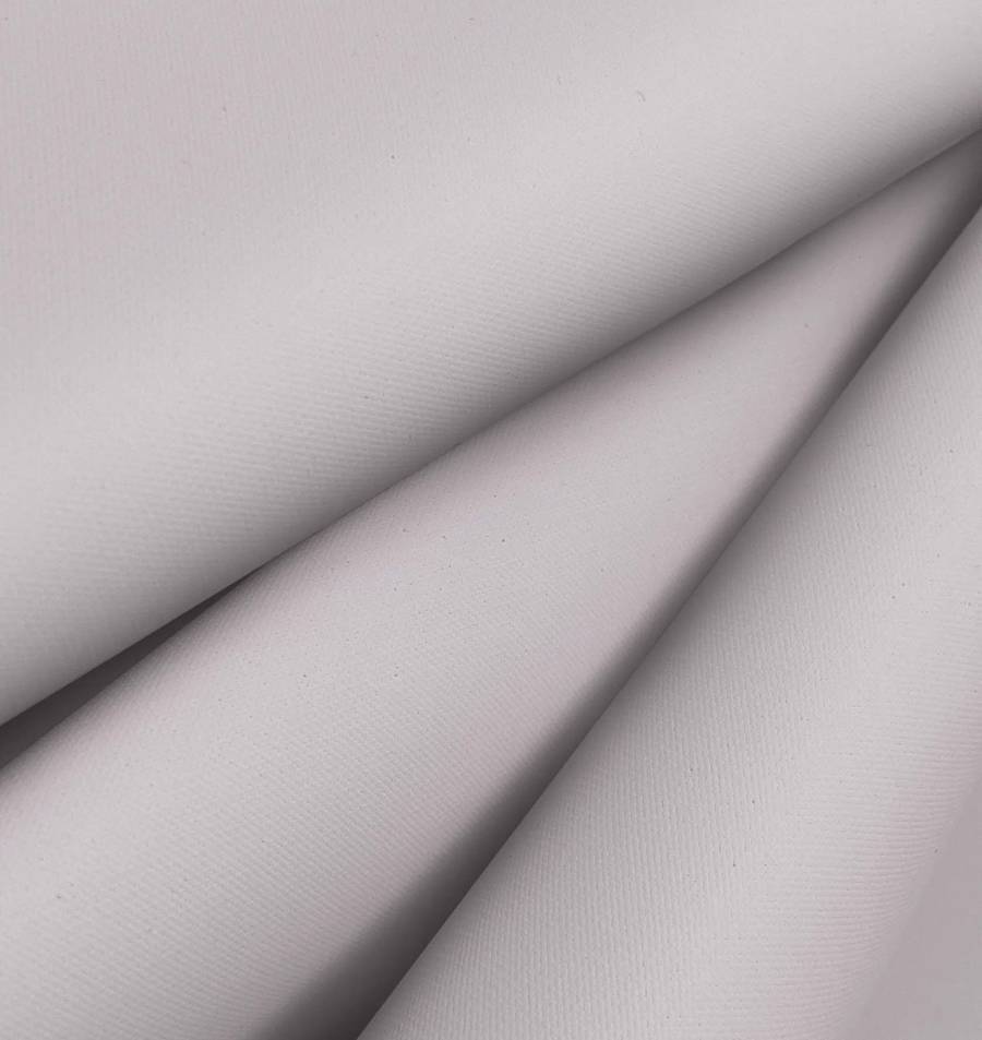 La tela está impresa con el color liso a una sola cara a través de impresión digital textil. La textura de la tela es granulada y rugosa, con un acabado impermeable que permite su uso para aplicaciones como gabardinas, chubasqueros, cojines y toldos exteriores. La tela es opaca al tacto y tiene una textura visual discreta que se siente suave al contacto.