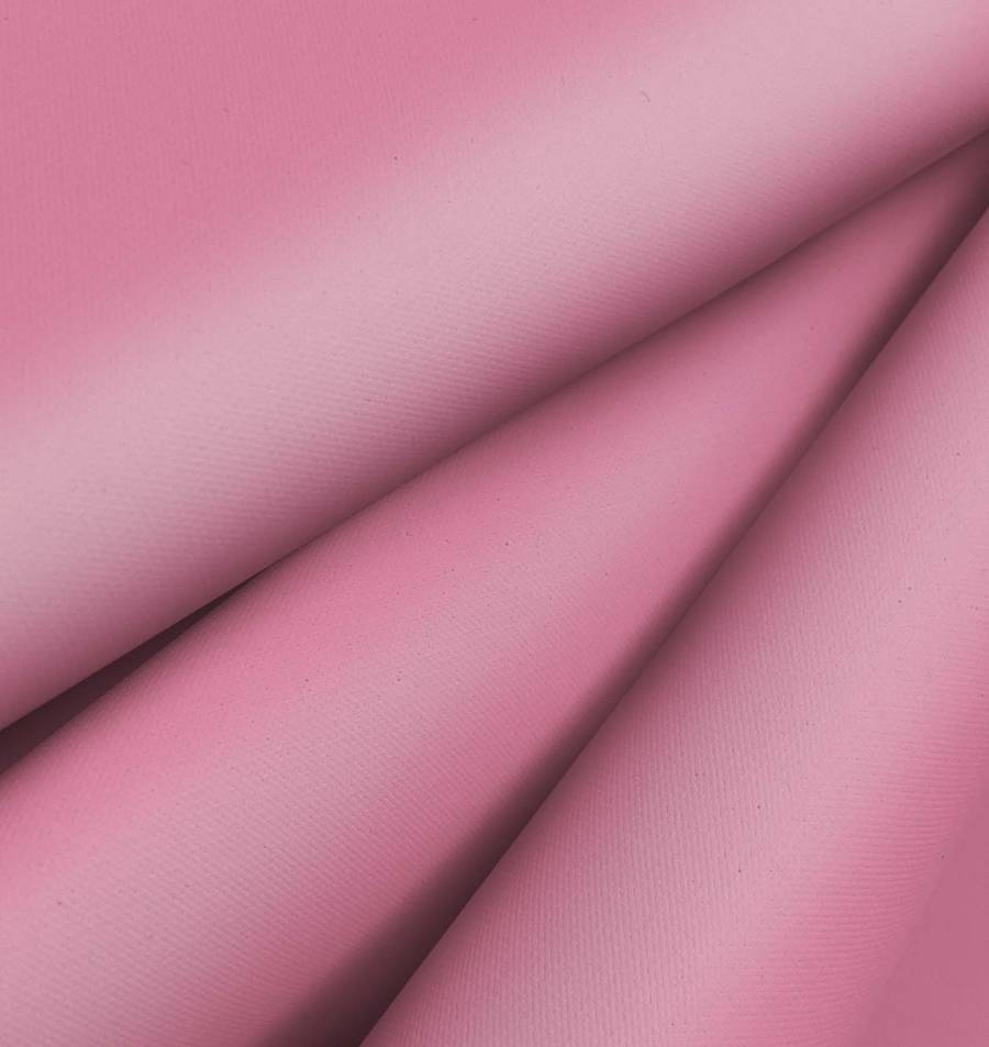 La tela base es Tela Impermeable - Outdoor, con un tejido técnico de 100% poliéster de 200 gr/m2 y un ancho de 150 cm. El color liso impreso es rosa esmalte de uñas, con un CMYK de 0 61 14 0. El color secundario proporciona una sensación suave y cálida, con una perspectiva emocional relacionada con la feminidad, la delicadeza y el amor. Combina especialmente con tonos pasteles, grises y verdes claros.