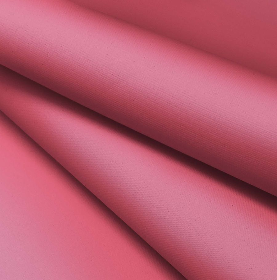 La tela base es la Tela Impermeable - Outdoor, un tejido técnico compuesto al 100% de poliéster con un gramaje de 200 gr/m2 y un ancho de 150 cm. Este tejido presenta un acabado impermeable lo que lo hace ideal para aplicaciones en moda, deportivo, decoración exterior y textil/hogar. El color liso impreso en esta tela es rosa mate, y su CMYK es 0 74 36 0, lo que significa que está compuesto principalmente de tintas magenta y yellow. Este color secundario es cálido y vivo, y combina perfectamente con tonos verdes y grises, así como con otros tonos rosados.