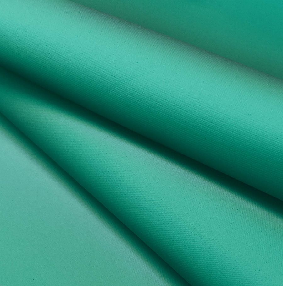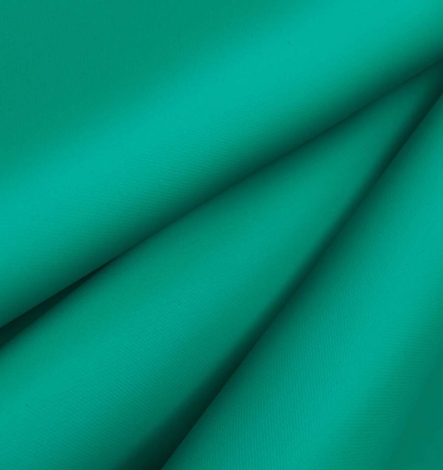 La Tela Impermeable - Outdoor es un tejido técnico compuesto por 100% poliéster, con un gramaje de 200 gr/m2 y un ancho de 150 cm. Su color liso impreso es verde acuático, con un CMYK de 82 16 62 2, lo que le otorga un tono fresco y vivo muy adecuado para su uso en prendas de moda, chubasqueros y en decoración exterior.