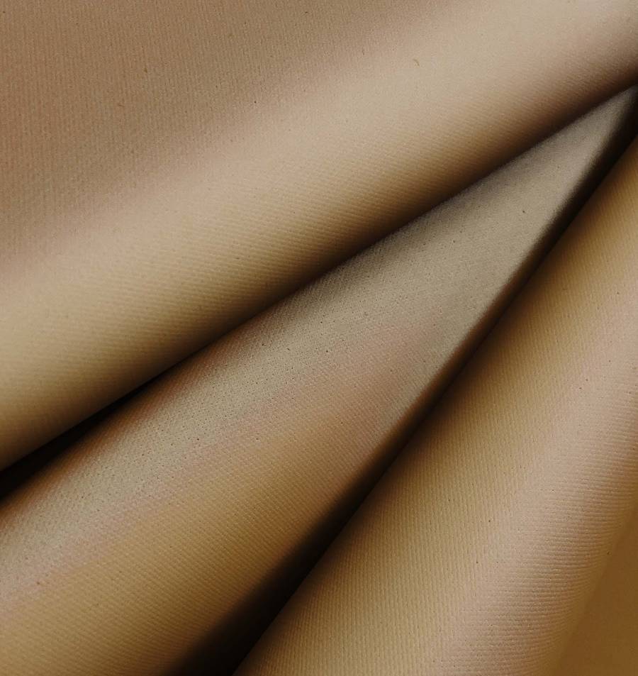 La tela base está impresa con el color liso a una sola cara por impresión digital textil, lo que significa que la tinta se aplica solo en una cara del tejido y no penetra en las fibras, como sucede con un tejido tintado.