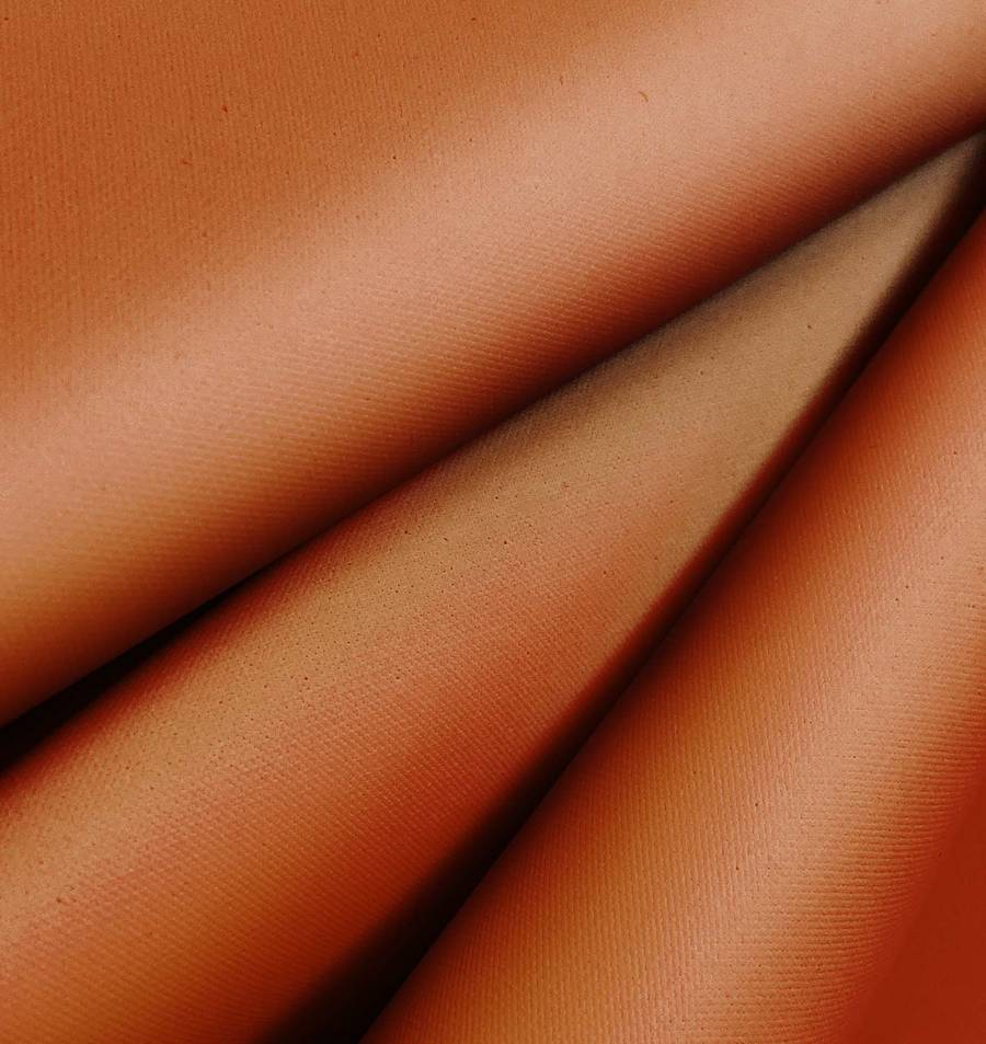 La tela base es el tejido técnico 100% poliéster de 200 gr/m2 conocido como Tela Impermeable - Outdoor. Este tejido se presenta en color liso impreso en un tono marrón-bronce antiguo, que se acerca al color de la oxidación del bronce envejecido. El CMYK de este color liso es de 28 69 93 24, siendo el magenta el que más destaca.