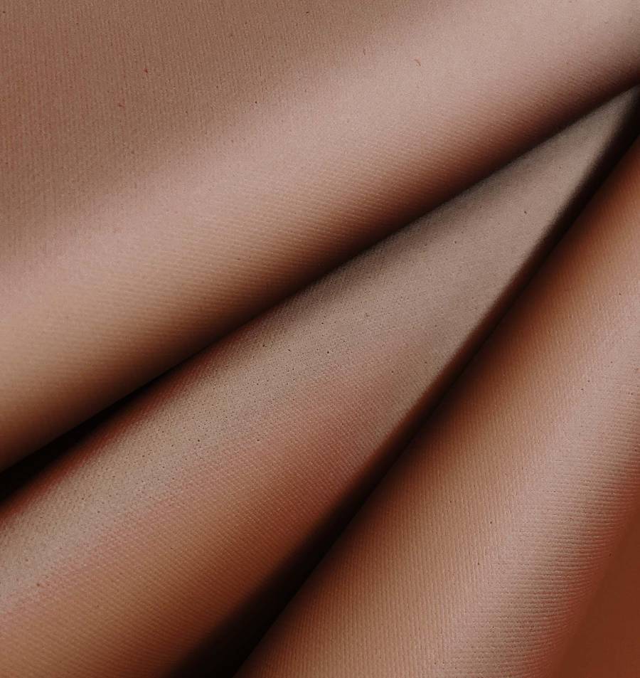 La tela base de este tejido es la Tela Impermeable - Outdoor, un tejido técnico compuesto al 100% por poliéster con un gramaje de 200 gr/m2 y un ancho de 150 cm. El color liso impreso en esta tela es un Marrón Canela con un contenido de CMYK de 35 55 61 39, lo que indica una combinación de tintas magenta, amarilla y negra en mayor cantidad que la tinta cian.
