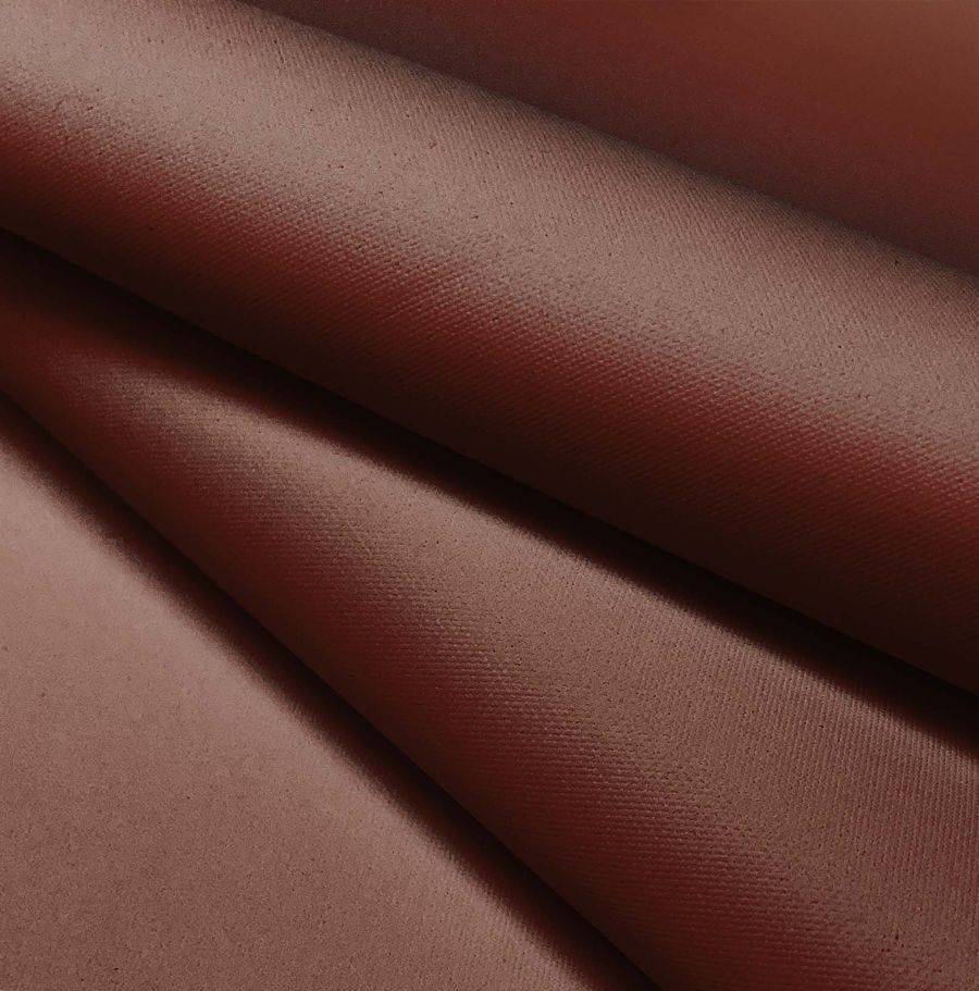 La tela base es la Tela Impermeable - Outdoor, un tejido técnico de 100% poliéster con un gramaje de 200 gr/m2 y ancho de 150 cm. El color liso impreso es marrón cedro, con un CMYK de 36 76 78 52. Este color combina muy bien con tonos tierra y verdes oscuros, lo que le da una sensación de naturaleza y elegancia. El tejido está impreso con el color liso a una sola cara por impresión digital textil, lo que lo hace resistente y duradero.