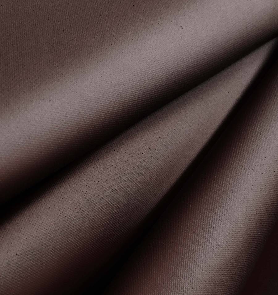 La tela base, Tela Impermeable - Outdoor, es un tejido técnico compuesto por 100% poliéster con un gramaje de 200 gr/m2 y un ancho de 150 cm. Presenta un acabado impermeable, textura granulada y rugosa visualmente opaca. El color liso impreso es marrón chocolate con los siguientes valores en CMYK: 51 63 58 68. Este color secundario tiene un tono cálido y elegante, que combina especialmente bien con tonos beige, amarillos, dorados y verdes oliva. Es importante destacar que el tejido está impreso con el color liso a una sola cara mediante impresión digital textil.