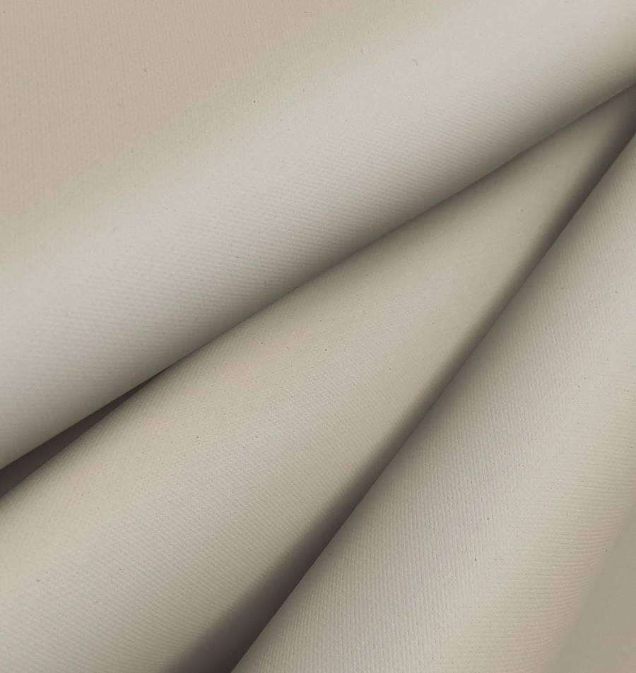 La tela se imprime con un color liso a una sola cara por impresión digital textil. Si bien el tejido no está tintado, sino impreso, la calidad del pigmento no se resiente ni pierde su tonalidad tras lavados o exposición a los rayos del sol. La tela tiene un acabado impermeable, es granulada y rugosa al tacto, lo que le confiere una textura resistente y perfecta para resistir las inclemencias meteorológicas.