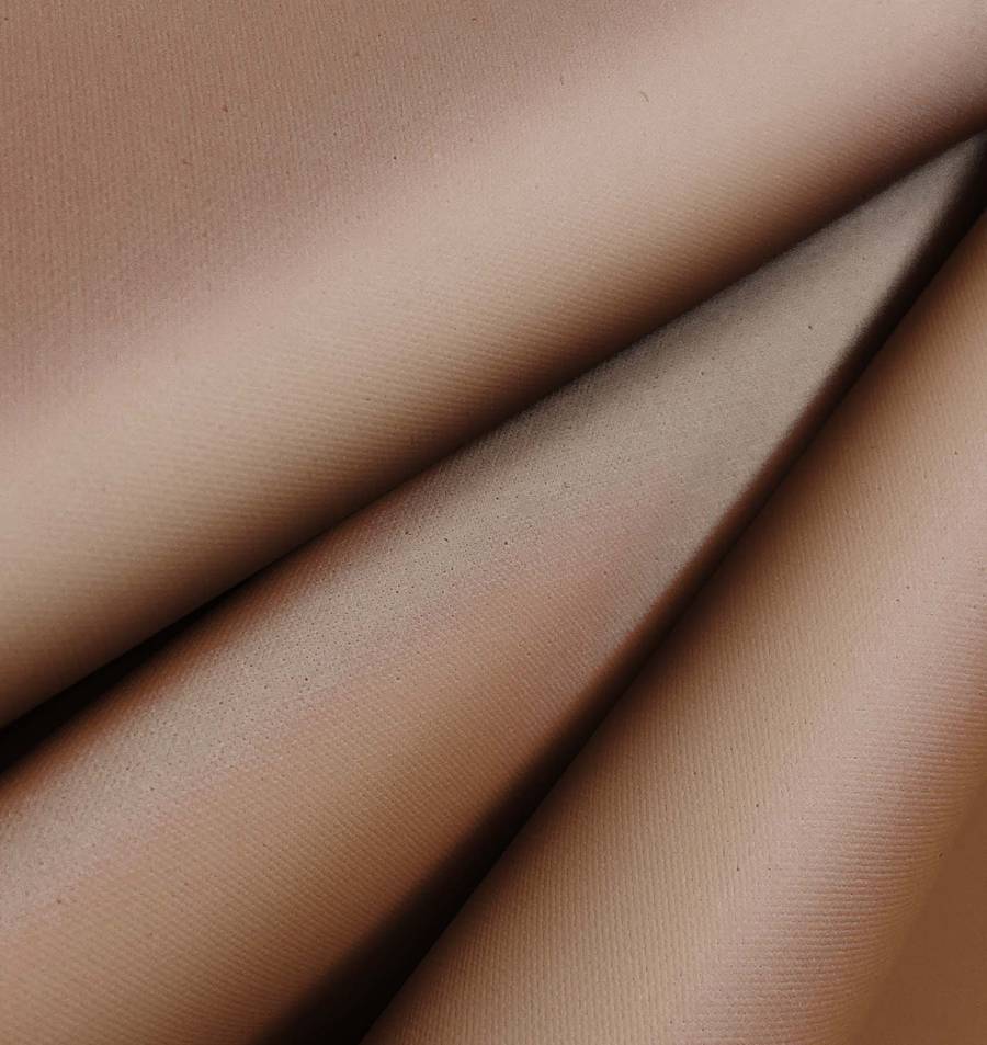 La tela base es una Tela Impermeable - Outdoor de tejido técnico compuesta por 100% poliéster, con un gramaje de 200 gr/m2 y un ancho de 150 cm. El color liso impreso en esta tela es marrón roble, cuyo CMYK es de 36 47 54 32.