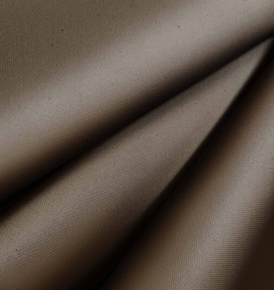 La Tela Impermeable - Outdoor de tejido técnico, 100% poliéster y gramaje de 200gr/m2, presenta un color liso impreso en marrón nutria con un contenido de CMYK de 53 53 64 55. Este color secundario, simboliza la tierra y transmite una sensación de estabilidad y calidez, combinando a la perfección con tonos beige, verde oscuro o grisáceos.