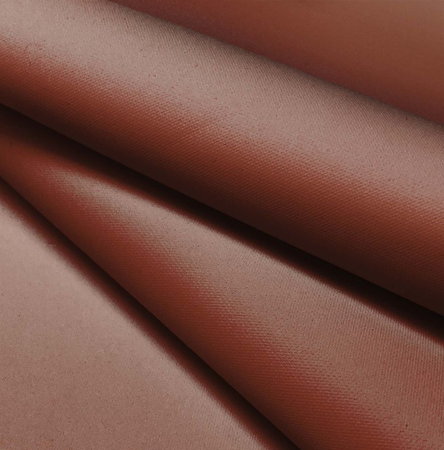 La tela base de nuestra impresión es la Tela Impermeable - Outdoor, un tejido técnico compuesto 100% de poliéster con un gramaje de 200 gr/m2 y un ancho de 150 cm. De color marrón pátina (CMYK 33 65 67 38), el color liso impreso destaca por su tonalidad terrosa y elegante. El marrón pátina se describe como un color cálido que transmite seguridad y estabilidad. Combina muy bien con tonos dorados, azules marinos y cremas.