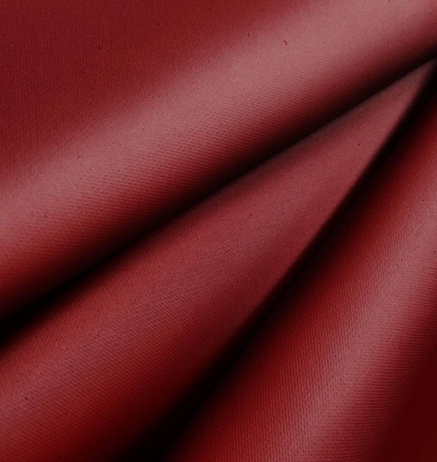 La tela base de este tejido es una Tela Impermeable - Outdoor de tejido técnico de 100% poliéster con gramaje de 200 gr/m2 y un ancho de 150 cm. El color liso impreso es una combinación de marrón y sangre roja, que se refleja en el CMYK: 34 100 90 54. Este color tiene una gran personalidad y fuerza, representando una mezcla entre la pasión y la seguridad. Va bien con tonos beige, dorados y ocres. Es importante destacar que este tejido está impreso con el color liso a una sola cara por impresión digital textil.