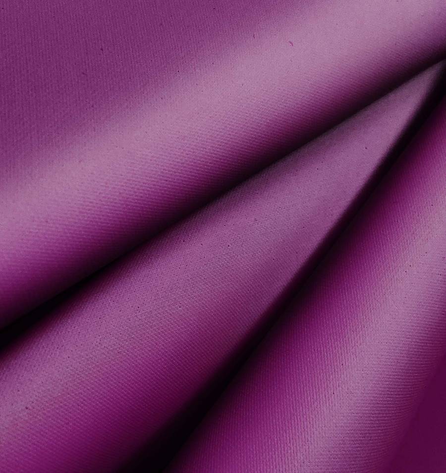 La tela base de este tejido técnico se compone al 100% de poliéster y tiene un gramaje de 200 gr/m2 y un ancho de 150 cm. Es una tela impermeable y resistente al agua, perfecta para aplicaciones de exterior, como chubasqueros, cojines de exteriores o manteles para el comedor. El color liso impreso en este tejido es de un morado bizantino intenso, con un CMYK de 62 95 26 17, que se combina bien con tonos más neutros como el blanco o el negro, así como con tonos fríos como el azul o el verde.
