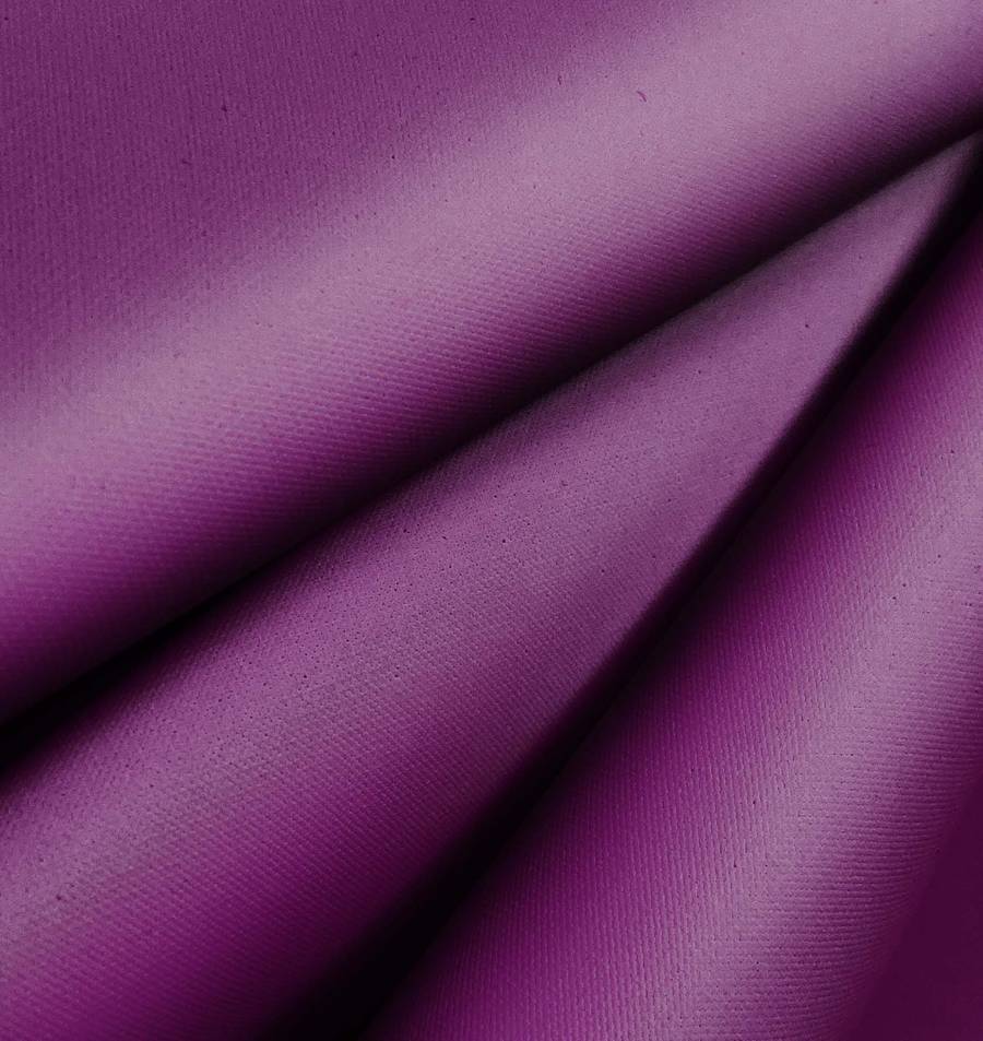 La tela base es la Tela Impermeable - Outdoor, un tejido técnico compuesto por 100% poliéster de 200 gr/m2 y un ancho de 150 cm. El color liso impreso es Morado, Palatinado Púrpura con un CMYK de 65 95 27 20. Este color es un tono violeta oscuro con matices rojizos y azulados, que emana elegancia y sofisticación. Combina bien con tonos beige, grises y rosados.