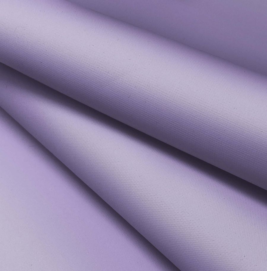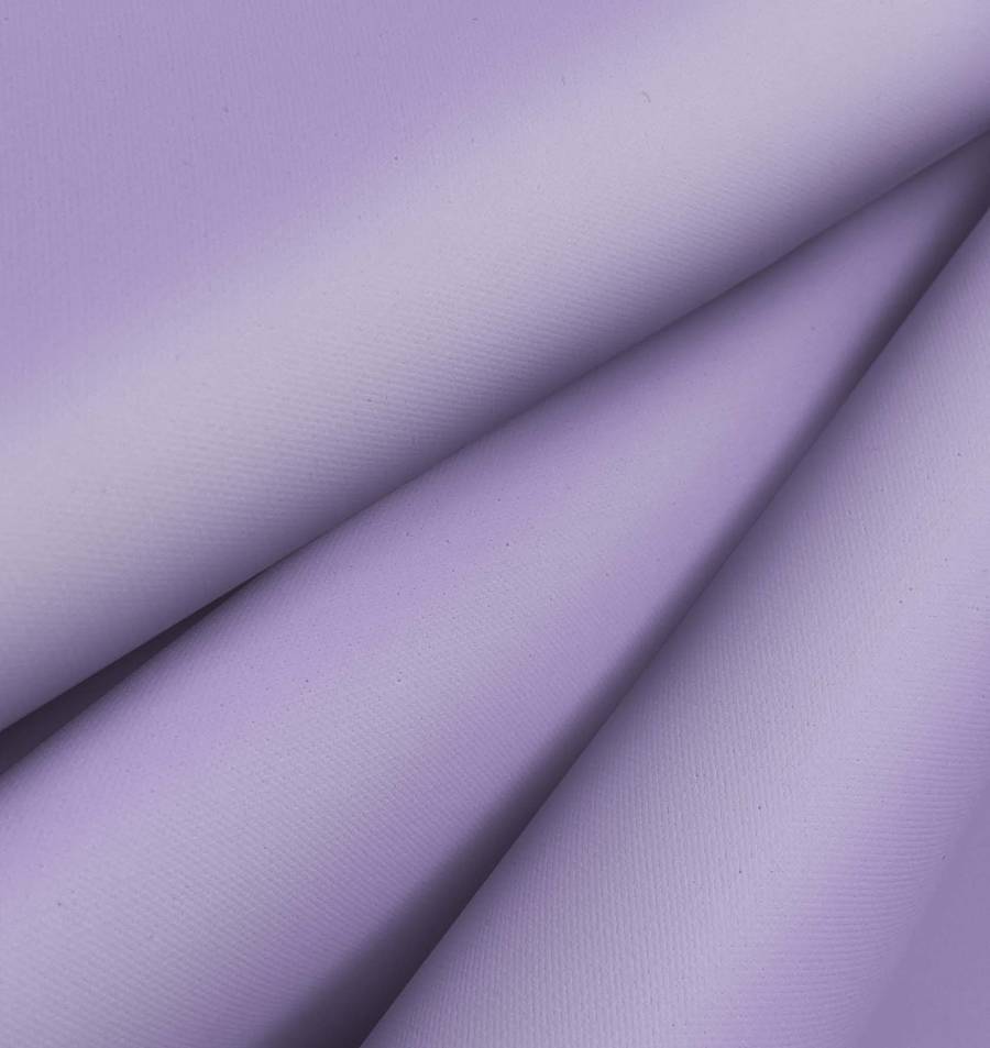 La tela base es la Tela Impermeable - Outdoor, un tejido técnico de poliéster con un gramaje de 200 gr/m2 y un ancho de 150 cm. El color liso impreso es un Morado Púrpura Pastel Ligero, cuya composición está definida por un CMYK de 36 42 0 0. Este color evoca a la serenidad y al equilibrio emocional. Además, combina perfectamente con los colores grises y verde agua en decoración y con colores claros como blancos y azules pastel en prendas de vestir.