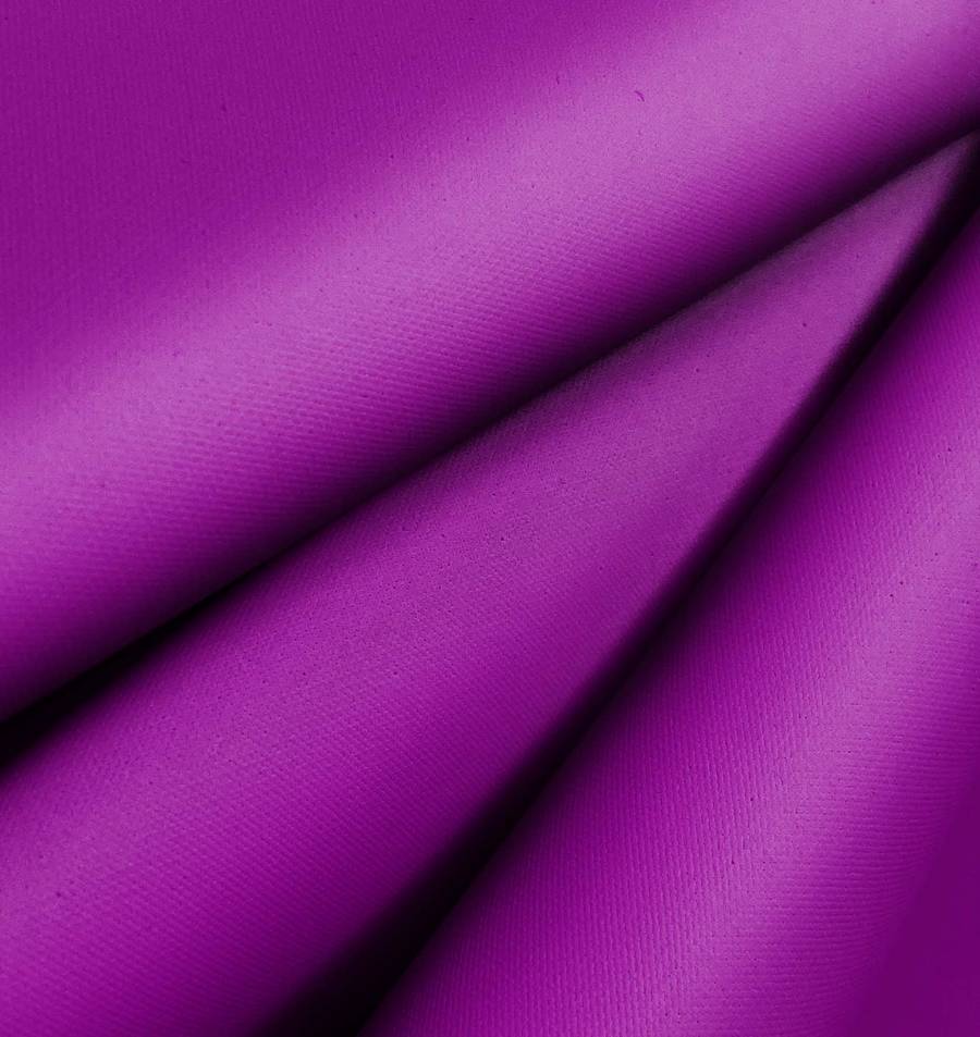 La tela base de este tejido es la Tela Impermeable - Outdoor, un tejido técnico compuesto 100% de poliéster con un gramaje de 200 gr/m2 y un ancho de 150 cm. El color liso impreso es de un intenso morado, con una combinación CMYK de 64 100 4 1. Este color evoca profundidad y elegancia, y combina especialmente bien con colores tierra y neutros, así como con otros tonos de morado y rosa.