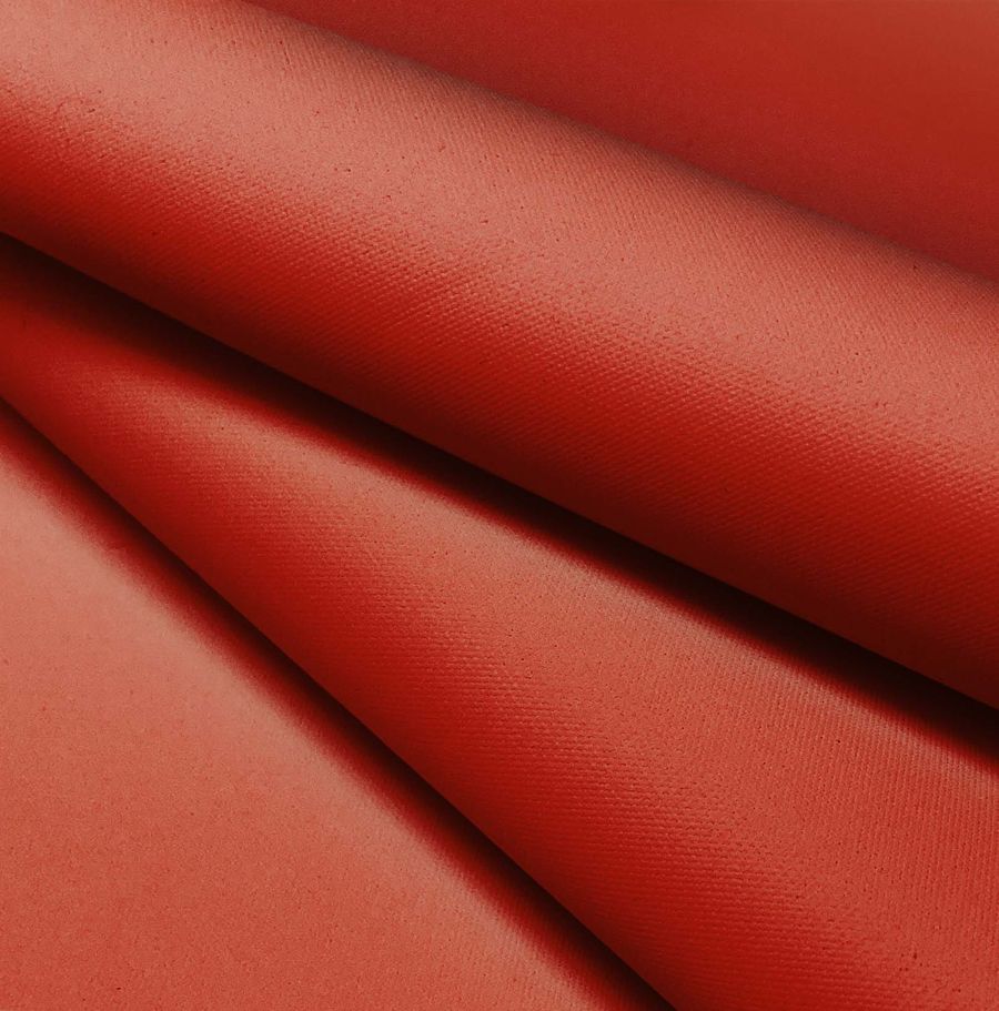 La tela base es la Tela Impermeable - Outdoor, un tejido técnico de 100% poliéster con un gramaje de 200 gr/m2 y 150 cm de ancho. Su color liso impreso es Naranja Ingeniería, con un CMYK de 20 91 100 11, lo que indica un color vivo y vibrante con una alta saturación.