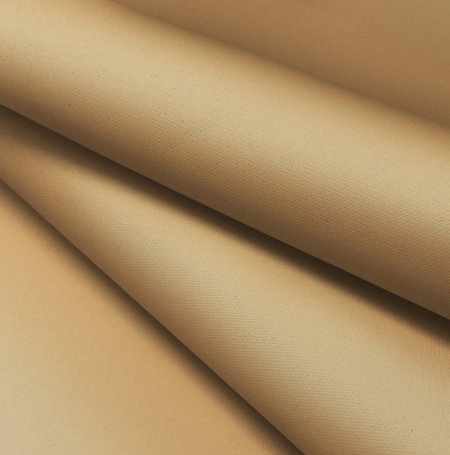 Esta tela presenta características como su acabado impermeable que la hacen idónea para su uso en prendas de exterior como chubasqueros, para decoración de exteriores como toldos o cojines y para textiles del hogar como manteles. Tiene una textura granulada y rugosa, lo que la hace resistente y duradera. Visualmente, es opaca y presenta una sensación táctil agradable y firme.