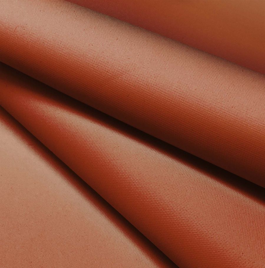 La tela base es la Tela Impermeable - Outdoor, un tejido técnico de 100% poliéster, con un gramaje de 200 gr/m2 y un ancho de 150 cm. Su color liso impreso es una combinación de naranja y siena, con un CMYK de 27 70 84 22. Este color secundario simboliza la vitalidad y la calidez de un día de verano. Además, se combina bien con tonos de azul y verde, creando un aspecto balanceado y armonioso. Es importante mencionar que este tejido está impreso con el color liso a una sola cara por impresión digital textil; es decir, no es un tejido tintado, sino impreso por una sola cara.