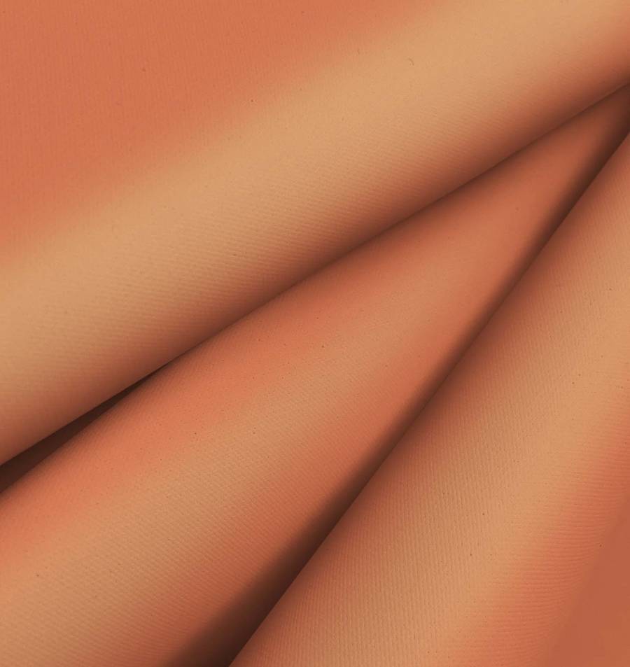 La Tela Impermeable - Outdoor es un tejido técnico de 100% POLIÉSTER con un gramaje de 200 gr/m2 y un ancho de 150 cm, que destaca por su impermeabilidad y textura granulada y rugosa. Su color liso impreso en Puesta de Sol, con un CMYK de 1 63 67 0, es un vibrante naranja anaranjado que evoca el atardecer. Combina muy bien con colores cálidos como amarillos y rojos, así como con neutros como beige y marrones.