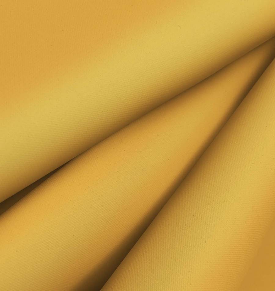 La Tela Impermeable - Outdoor en color amarillo anaranjado se imprime con una tinta Cyan de 0, Magenta de 38, Yellow de 78 y Black de 0, lo que proporciona un CMYK de 0 38 78 0. Este color secundario es brillante y alegre, representa la energía del sol y la vitalidad. Combina perfectamente con tonos tierra, grises y blancos, dentro de una paleta de colores naturales y relajantes.
