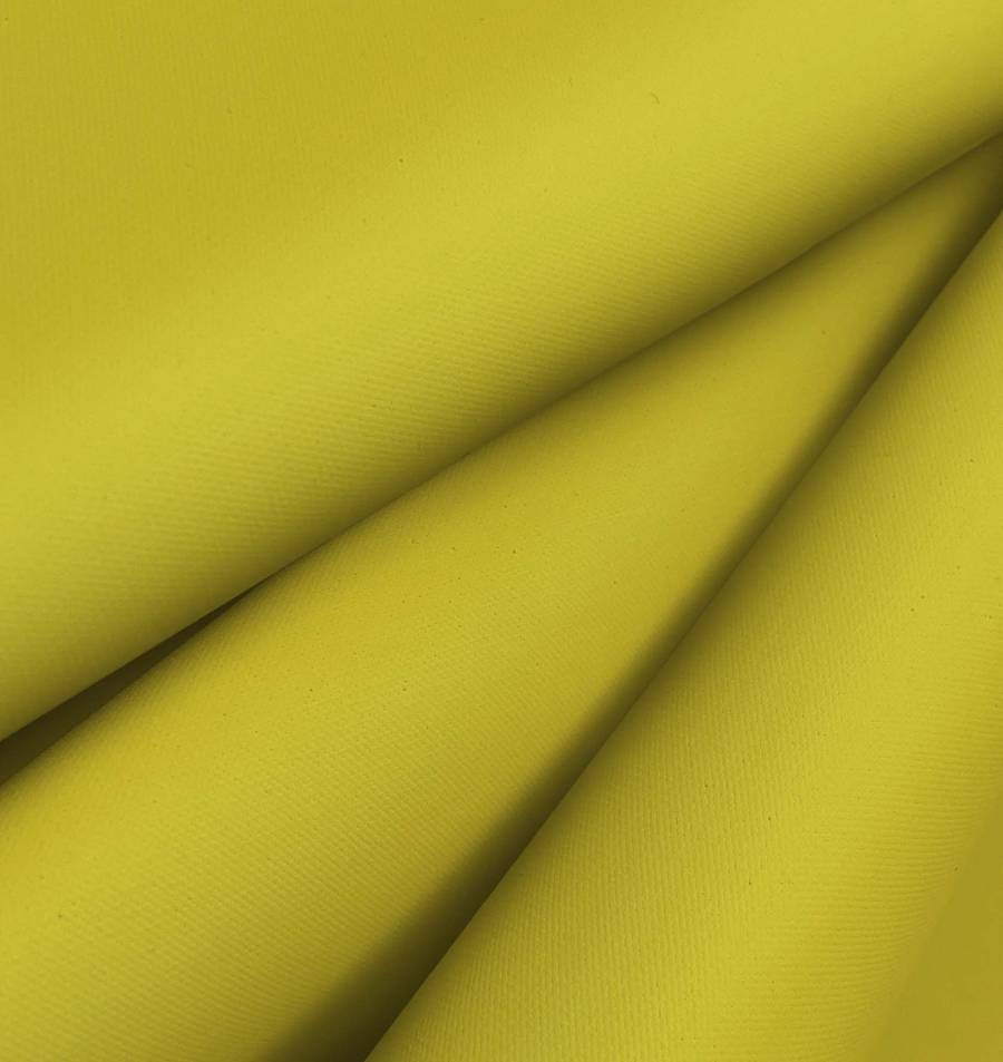 La Tela Impermeable - Outdoor es una tela técnica de poliéster con 200 gr/m2 de gramaje y un ancho de 150 cm. El color liso impreso es amarillo bambú con un CMYK de 22 19 91 3. Este color se caracteriza por su tonalidad cálida y natural, que lo hace especialmente indicado para aplicaciones en exterior y para crear un ambiente relajado.