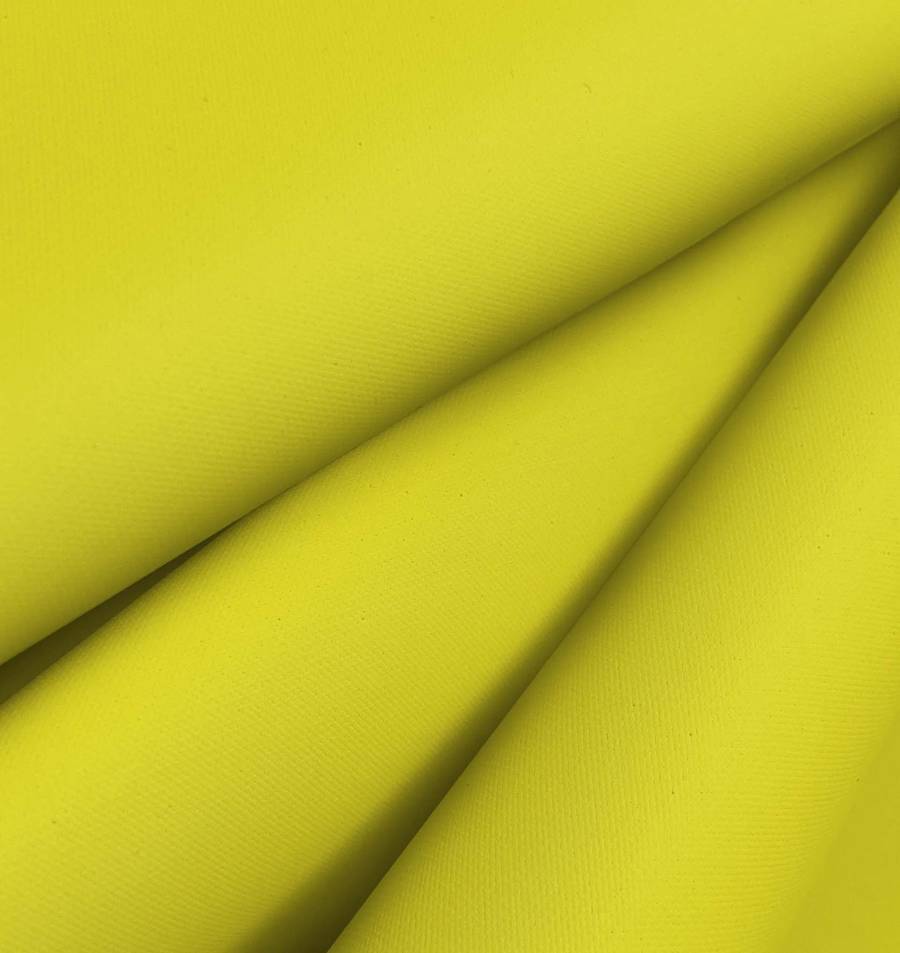 La tela base que utilizamos es la Tela Impermeable - Outdoor, un tejido técnico compuesto de 100% poliéster con un gramaje de 200g/m2 y un ancho de 150cm. Su color liso es un vibrante amarillo neón impreso con la tecnología de sublimación en una sola cara. El color secundario utilizado es el amarillo con una alta saturación de 85 en tinta Yellow. El color amarillo neón es un tono llamativo y juvenil, perfecto para prendas y accesorios de moda y deportivos. Combina particularmente bien con tonos neutros como el blanco y el negro para crear contrastes.
