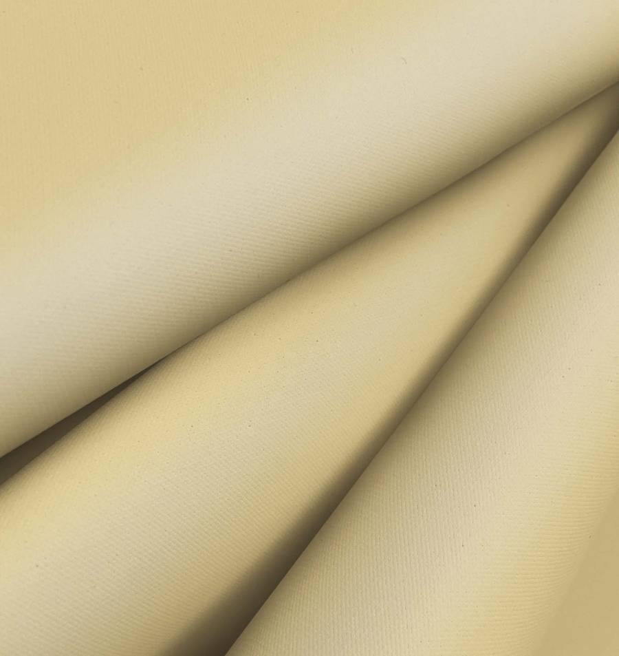 La tela base es la Tela Impermeable - Outdoor, un tejido técnico compuesto por un 100% de poliéster, con un gramaje de 200 gr/m2 y un ancho de 150 cm. Este tejido es impermeable y su textura es rugosa y granulada al tacto, con un acabado opaco visual. El color liso impreso en este tejido es Amarillo Veronés, con un CMYK de 0 13 48 0. Este color secundario cálido combina muy bien con otros colores vibrantes como el verde, el naranja y el rojo.