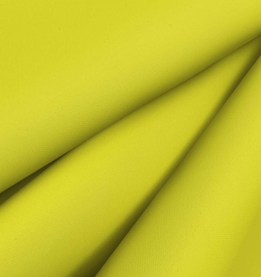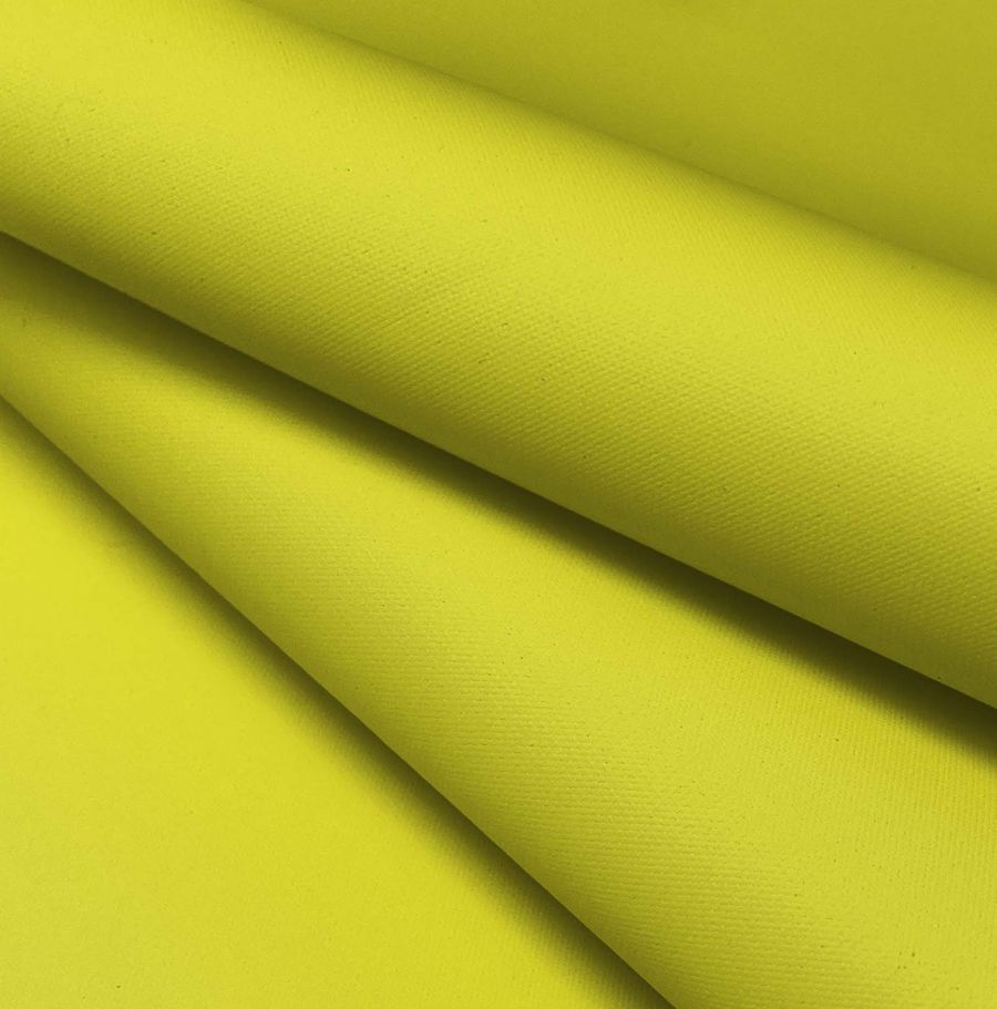 El color liso impreso es amarillo de zinc, con una tinta cyan de 10, una tinta magenta de 0, una tinta yellow de 84 y una tinta black de 0, representando un CMYK de 10 0 84 0. Este color es un amarillo pálido más bien apagado, lo que transmite a la tela una sensación de solidez y estabilidad. El color secundario de zinc añade un toque metálico al tejido, haciendo que resalte aún más su carácter impermeable y técnico. El amarillo de zinc combina muy bien con colores tierra y tonos grises, otorgando a la tela una versatilidad que permitirá una gran variedad de aplicaciones.