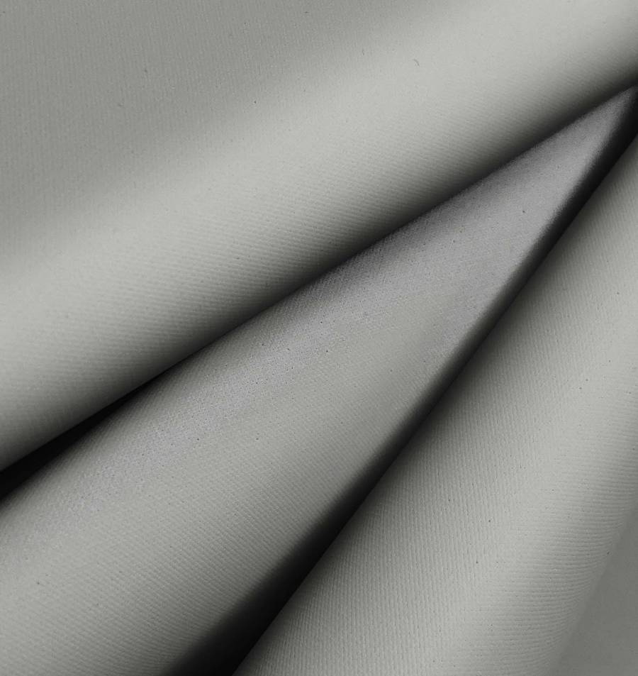 La tela base es la Tela Impermeable - Outdoor, un tejido técnico compuesto al 100% de poliéster con un gramaje de 200 gr/m2 y una anchura de 150 cm. Su color liso impreso es un acorazado gris, con los siguientes valores de tinta CMYK: 48 37 39 19.