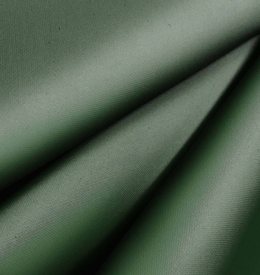 La Tela Impermeable - Outdoor en color liso impreso en verde espinaca tiene un CMYK de 69 44 68 41. Este color secundario se describe como fresco, renovador y calmado, evocando la naturaleza y la salud. Combina particularmente bien con tonos marrones y beige, azules profundos y grises suaves.
