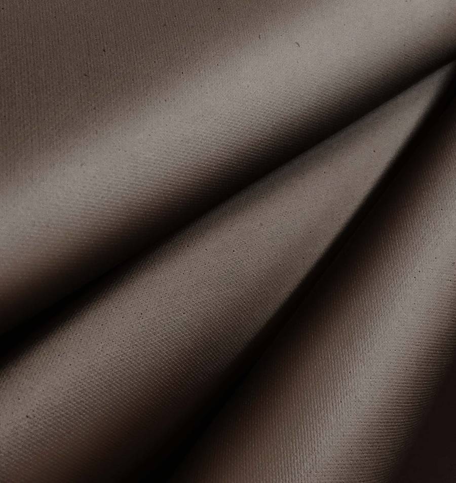 La tela base, Tela Impermeable - Outdoor, es un tejido técnico de 100% poliéster con un gramaje de 200 gr/m2 y un ancho de 150cm. En cuanto al color liso impreso, su CMYK es 54 57 62 63, un gris pardo con un ligero matiz verde. Este color secundario evoca la naturaleza y la estabilidad, con un tacto rugoso y granulado. Combina perfectamente con verdes y azules, y puede utilizarse para crear hermosas combinaciones en tonos tierra.